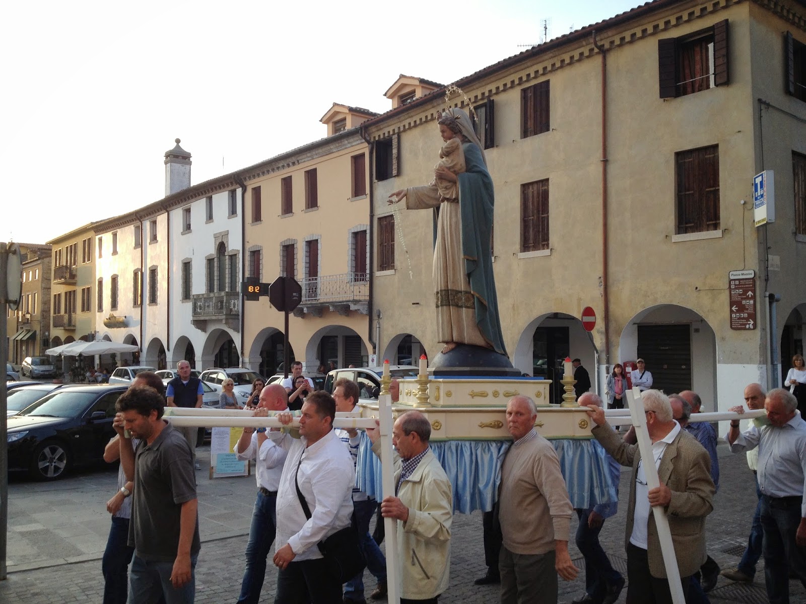 | Al bajar de la Rocca, pillamos las procesión de la Madonna |