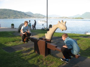 La primera noche la pasamos en el área de sosta de Baveno. A la mañana siguiente nos fuimos al camping Parisi, que esta ubicado a la orilla del lago, también en baveno. El camping es chiquitito, pero muy bonito, con el lago a un par de metros del los campers.