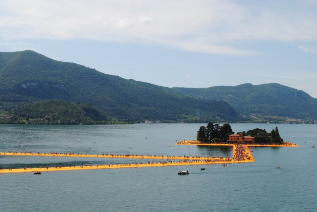 El otro día fuimos al lago de Iseo a ver el ultimo trabajo del artista Christo. La obra se llamaba floating piers y consistia en una pasarela que comunicaba la orilla del lago con las islas de Monte Isola y San Paolo.