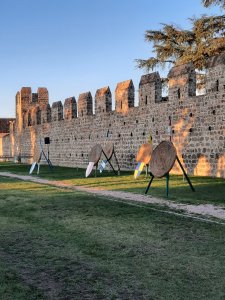 Los Carraresi, señores de Padova, conquistaron Monselice durante el siglo XIV. Bajo su gobierno se amplio el complejo de murallas que protegían el mastio, llegando a englobar la totalidad del Monselice medieval. Esto no pudo evitar que Monselice pasara a ser dominio Veneziano en 1405. Algunas partes de estas murallas aun se pueden ver en el centro de la ciudad.