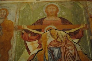 In the church it is possible to see some very old frescos and thanks to the fact that are damaged it is possible to see the original stone wall and appreciate how wide is the lime plaster layer.
