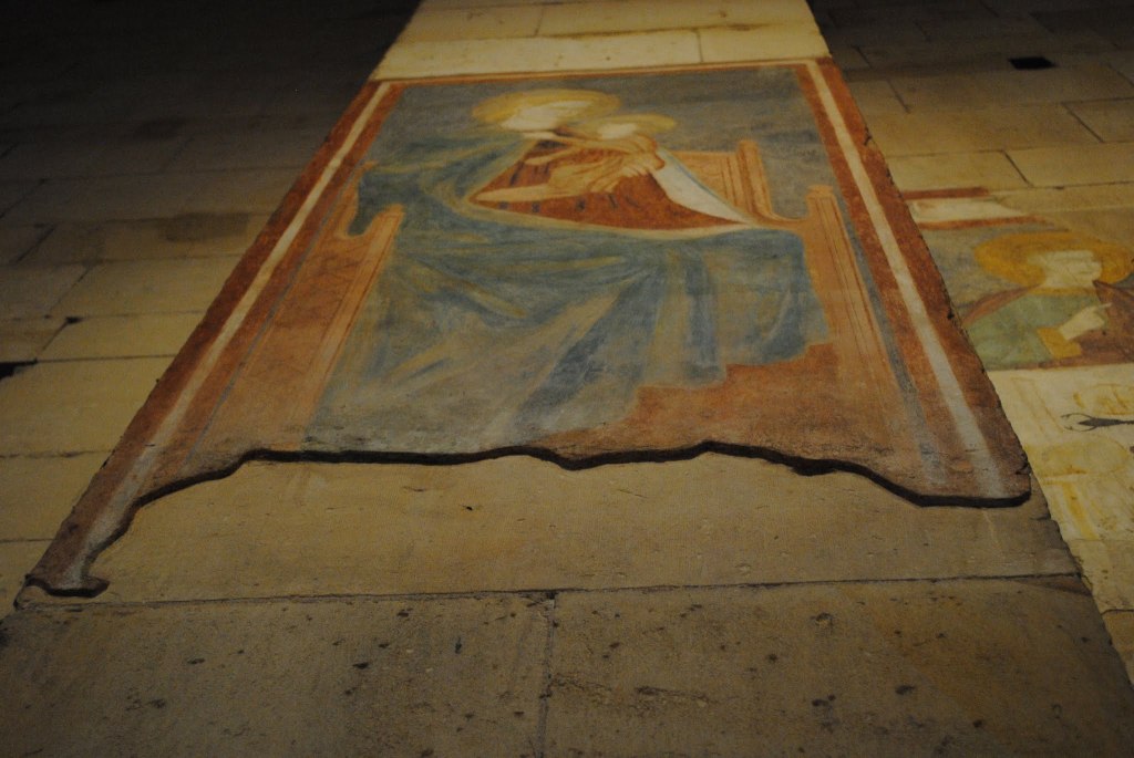 In other places there are frescos made on top of other older frescos, it mean an old restailyng of the church.