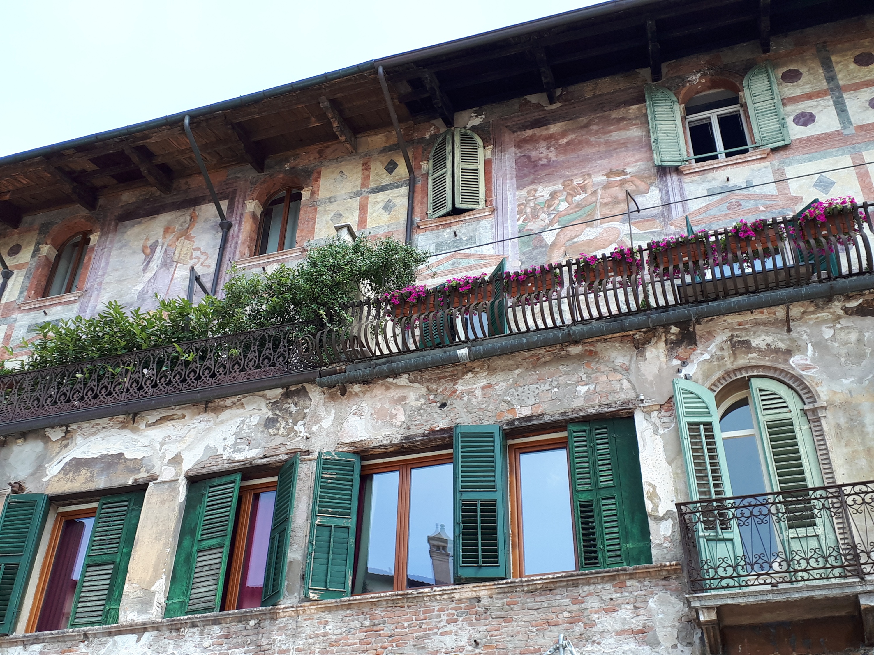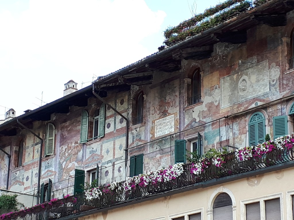 Para mi el edificio más hermoso de la piazza delle erbe es una gran construcción que tiene sus muros completamente cubiertos de afrescos.