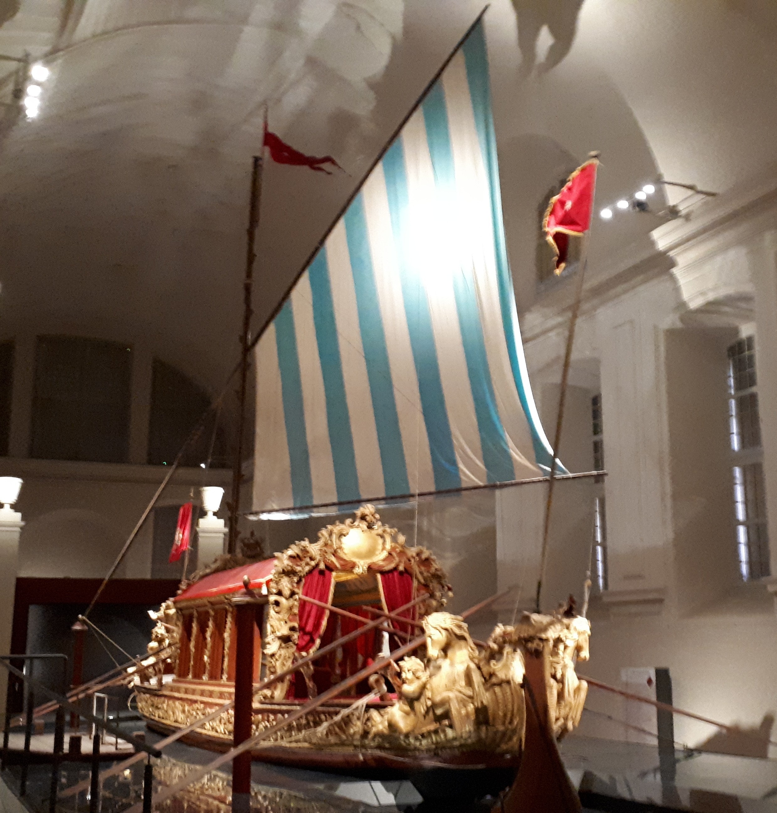 Nunca pensé que un dia llegaría a ver algo así!!! Sin embargo, en un viaje que hice a Torino, decidi visitar la Venaria reale (uno de los palacios reales de los Savoia) y me encontré cara a cara con el último Bucintoro Veneziano existente en el mundo, aún cuando según muchos deberia ser solo llamada Peota ya que el Bucintoro es solo el del Doge de Venezia.
