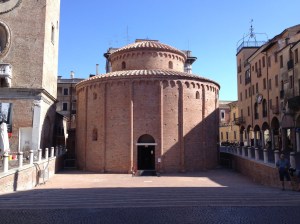 Sin enbargo, su ubicación varios metros bajo el nivel de la «piaza delle erbe», su forma redonda, su estilo arquitectónico hacen pensar que podría tratarse de la transformacion de algún un templo o mausoleo Romano.