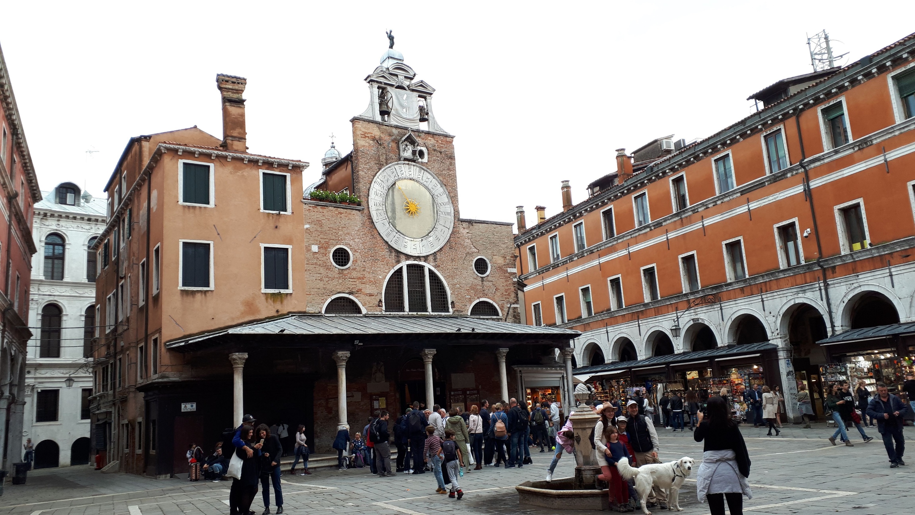 En Venezia, muy cerca del puente de Rialto hay una pequeña Iglesia que es muy distinta a las otras iglesias Venezianas. De una parte no tiene el tradicional campanil, pero sobre todo, lo que la hace diferente es su gran reloj del siglo XV, que ocupa buena parte de la fachada.