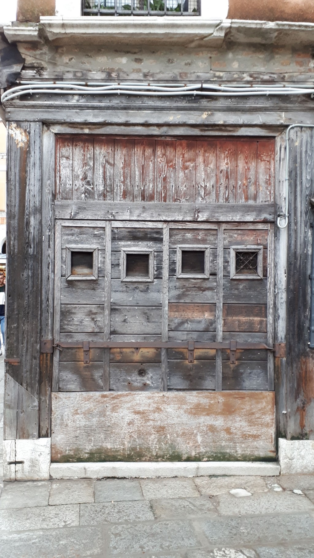 Hace un tiempo, caminando por la ciudad, cerca del puente del Rialto (sotoportego del Bancogiro), me encontré con una vieja puerta, que posiblemente no se abre desde hace muchísimos años, pero que a pesar de estar en malas condiciones, mantiene intacta toda su belleza.