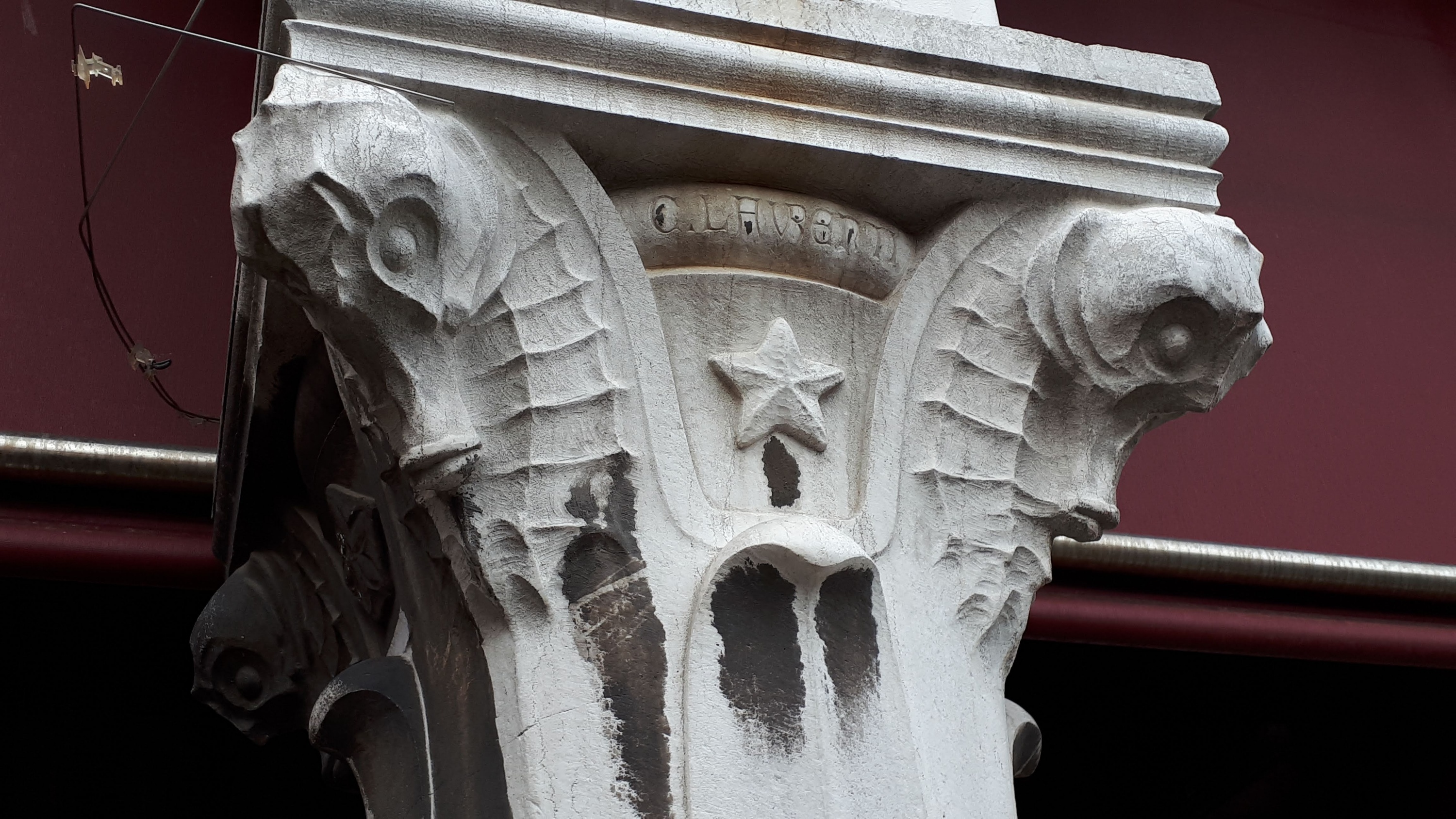 En ellas se pueden ver todo tipo de criaturas marinas, pero tambien algunas caras de personas. Se dice que corresponden al arquitecto que construyó el edificio (Domenico Rupolo) y al artista que las diseño (Cesare Laurenti).
