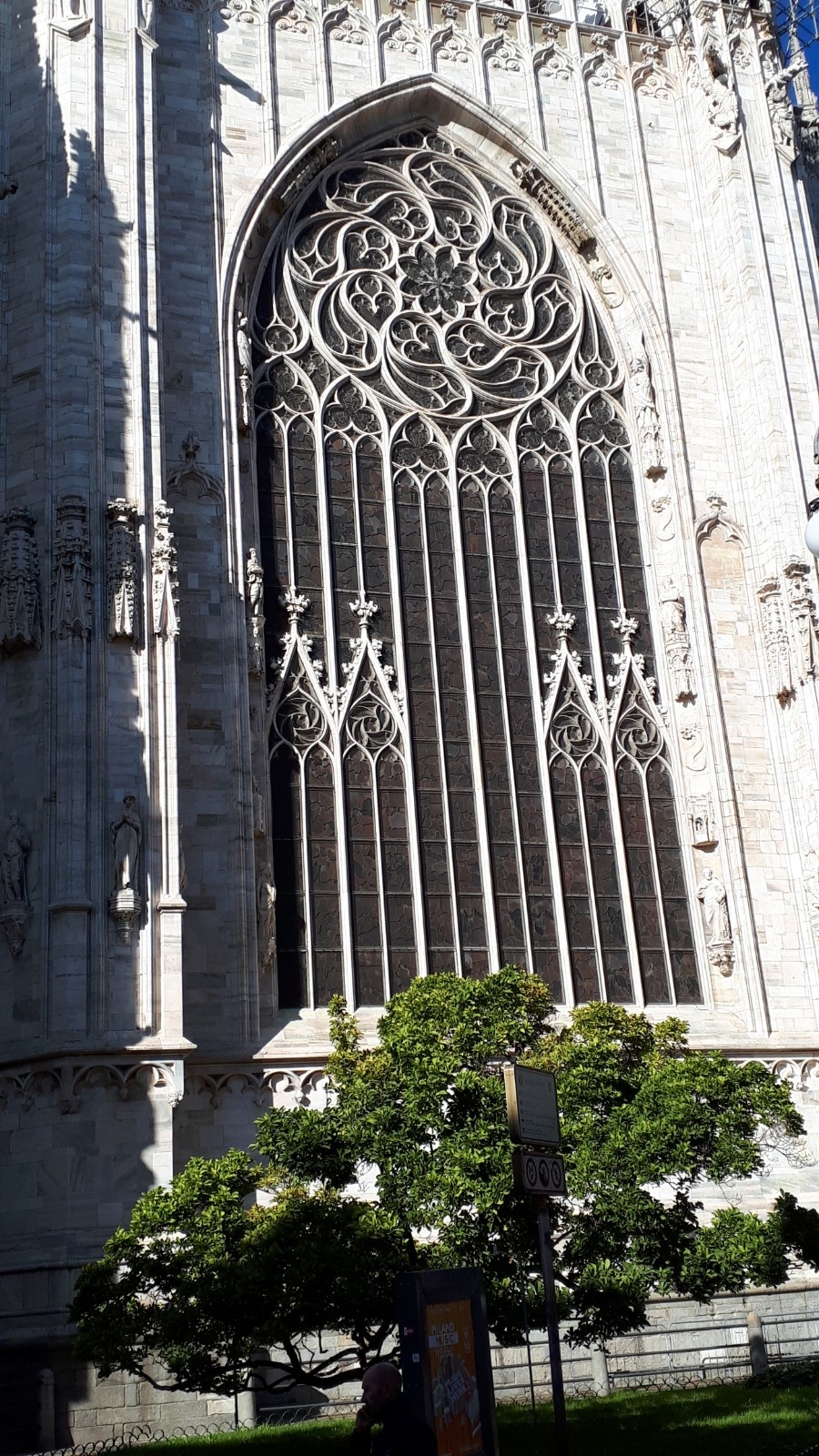 Aún cuando el duomo de Milan es considerado una joya del Gótico, mirando con cuidado se pueden encontrar detalles en otros estilos, como por ejemplo el balcon sobre la puerta principal.
