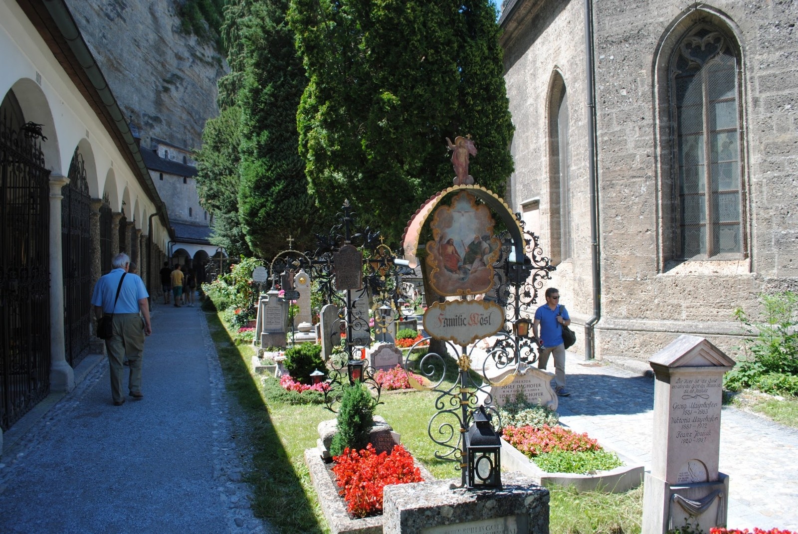 My favorite place in town is the Abbey Cemetery, where Salzburg’s main inhabitants were buried for centuries. Its small tombs scattered here and there, with their stone headstones, almost always adorned with beautiful flowers make it look more like a small boulevard than a cemetery.
