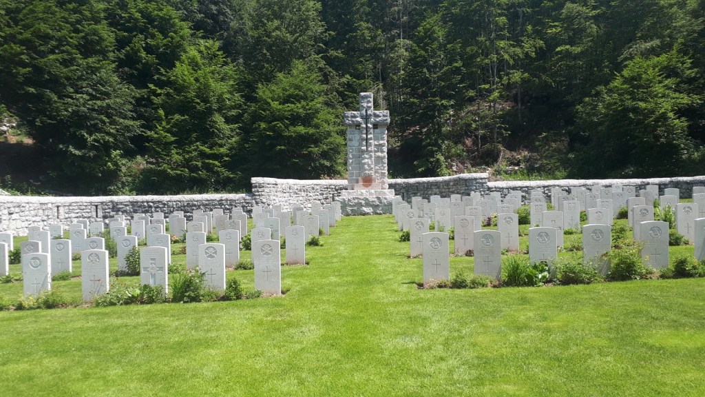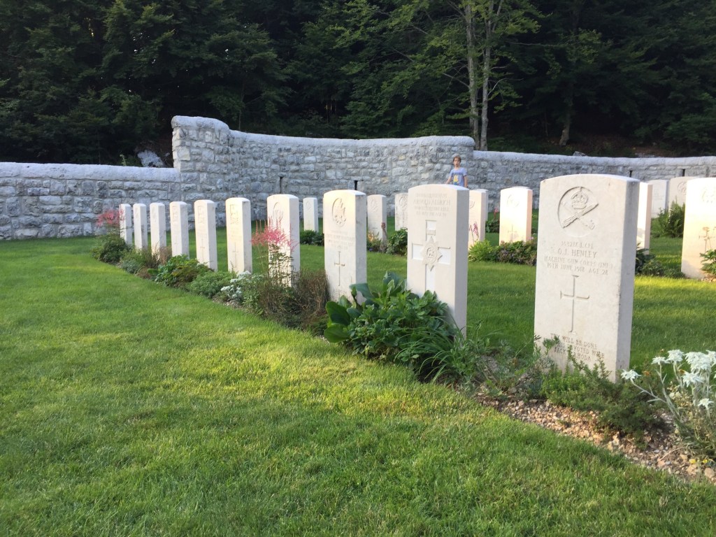 In the high plateau of Asiago and in other places of the Italian Alps it is not strange to find some cemeteries whith the tombs of many soldiers who died during the First World War. Particularly beautiful are the English cemeteries.
