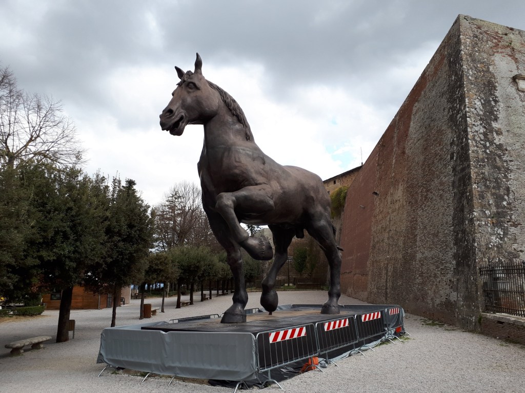 Era inmensa, tienia 7,8 m de altura y unos 10 metros de largo, con un peso total de 20 toneladas. Me imagino cuan grande podría haber llegado a ser si hubiera sido realiza con el jinete sobre el caballo.