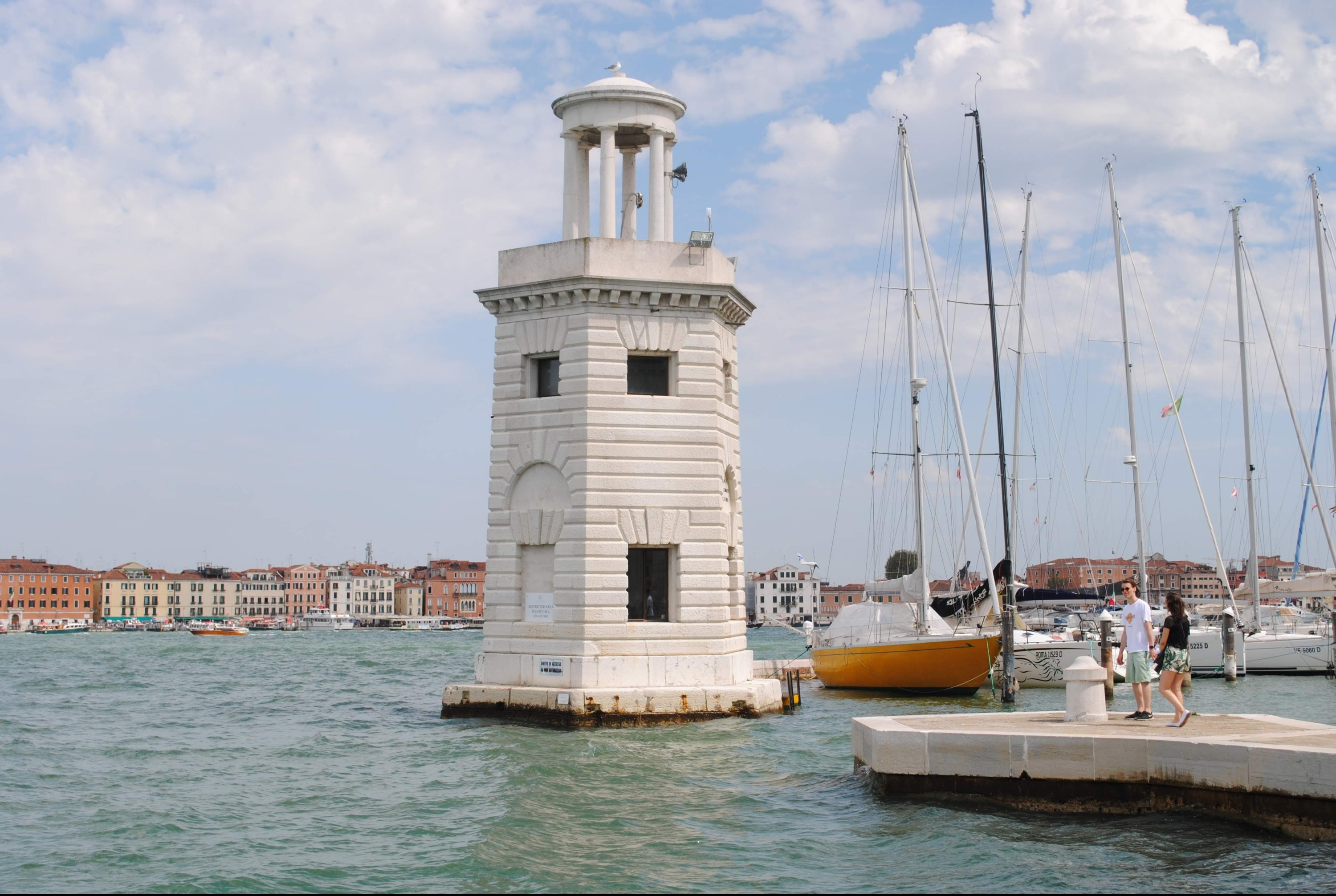 Visitando la isla de San Giorgio en Venezia, no se puede no admirar el pequeño faro que cuida la entrada del puerto.
