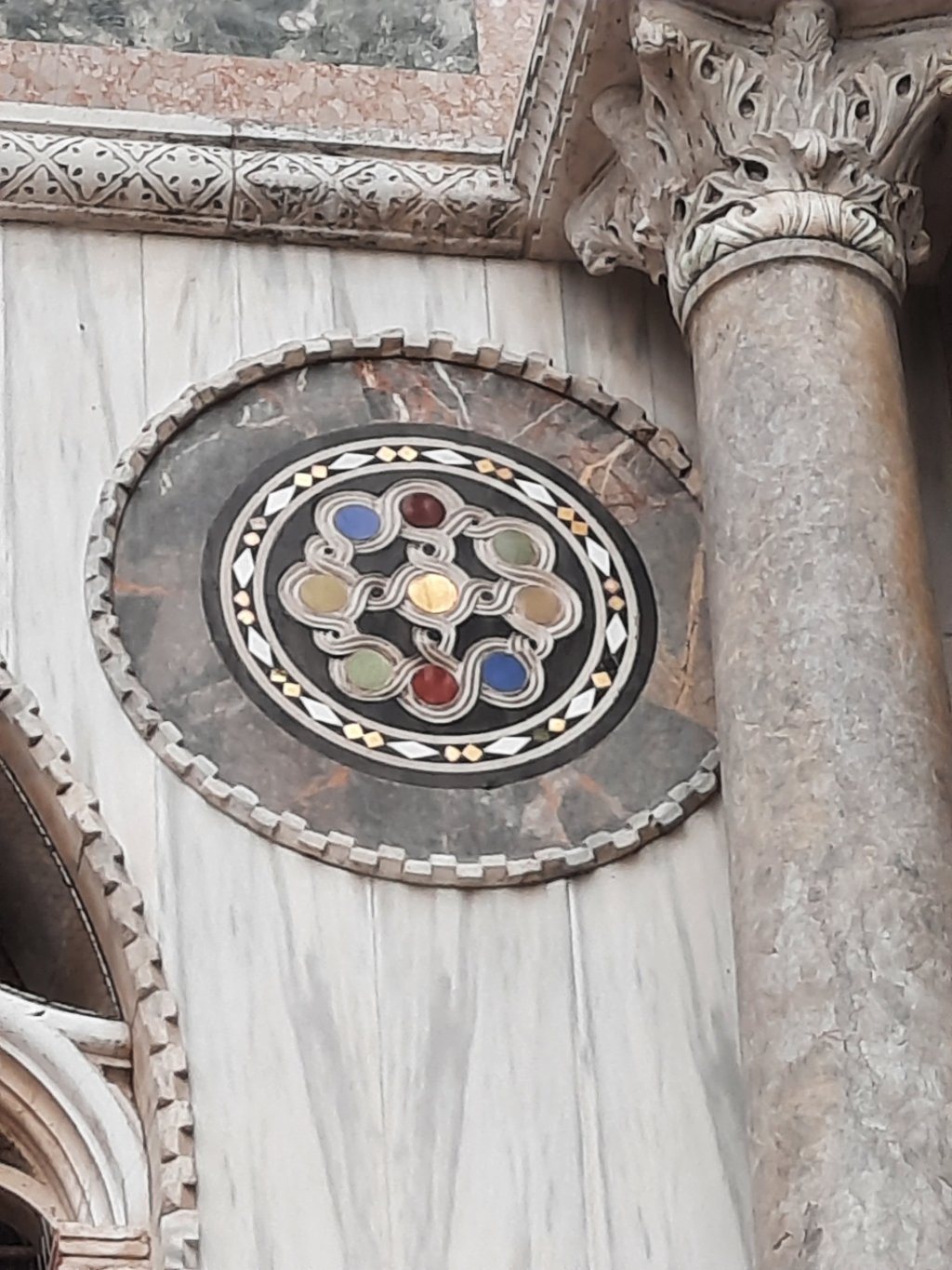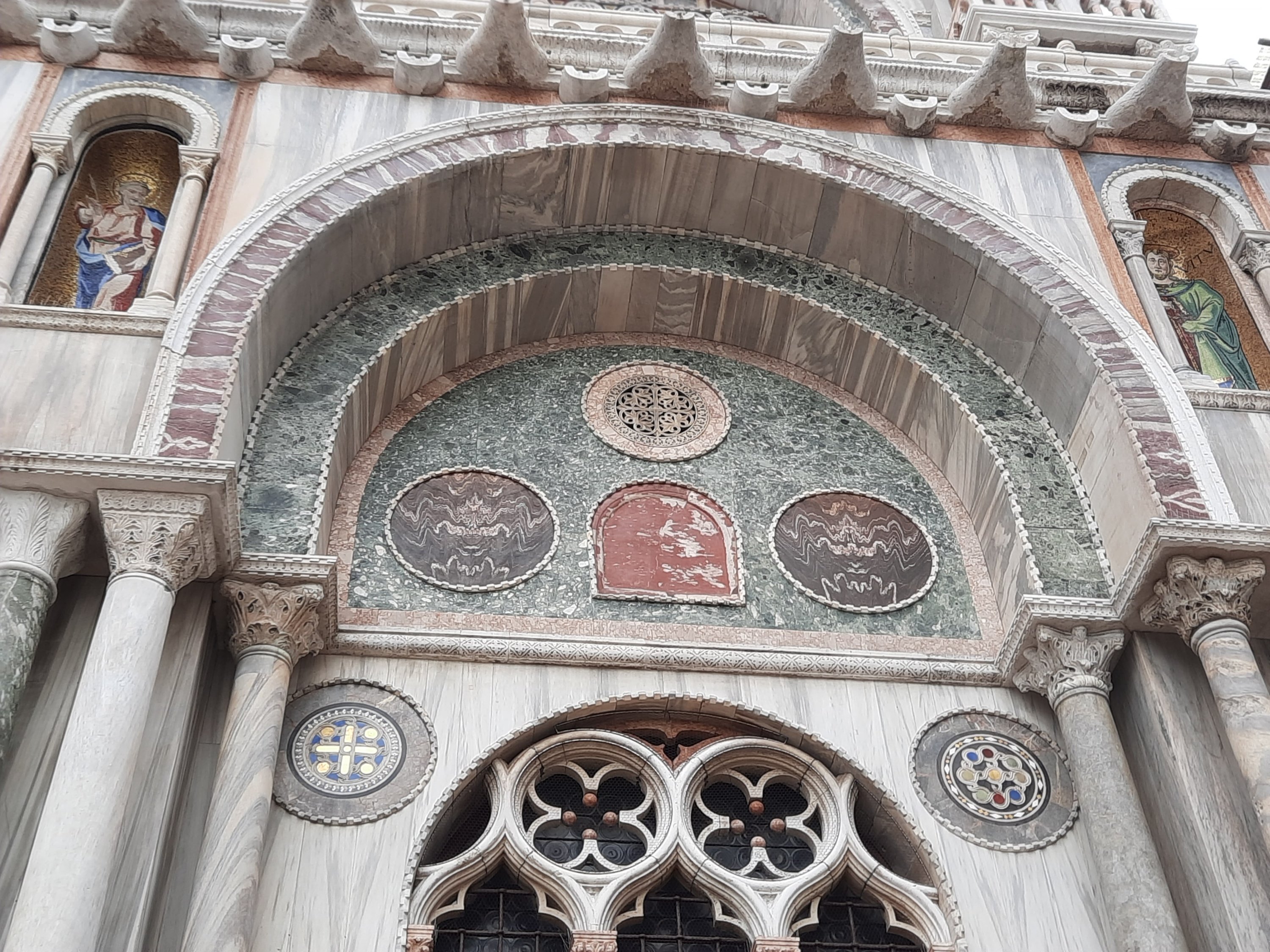 Las siguientes fotos muestran detalles del costado que da a la Piazzetta di San Marco a un costado de la puerta de la carta y de las columnas de Aquitania.