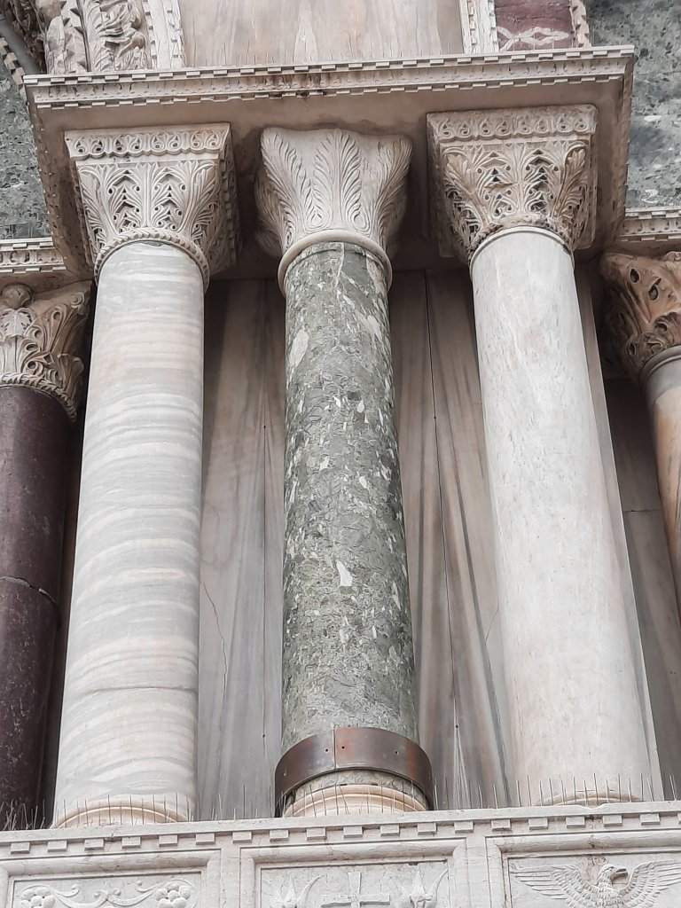 Uno de estos es una serie de magnificas columnas, que con alta probabilidad fueron portadas desde Constantinopoli o alguna otra ciudad del oriente.