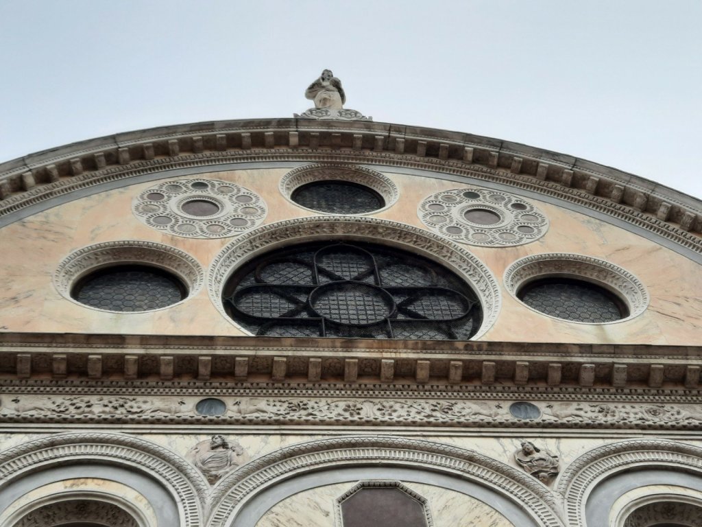 La chiesa di Santa Maria dei Miracoli es una verdadera obra de arte, un poema al marmol, ya que está completamente revestida tanto al interior y al esterior con marmoles de distintos colores y además su diseño con el uso de circulos como uno de sus principales elementos decorativos fueron únicos y una novedad en la Venecia del siglo XV.