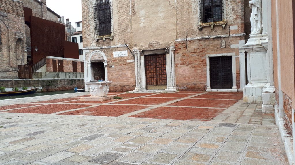 Uno de los pocos lugares donde aún es posible ver este tipo de pavimento en Venecia es en el campo dell’Abbazia della Misericordia.