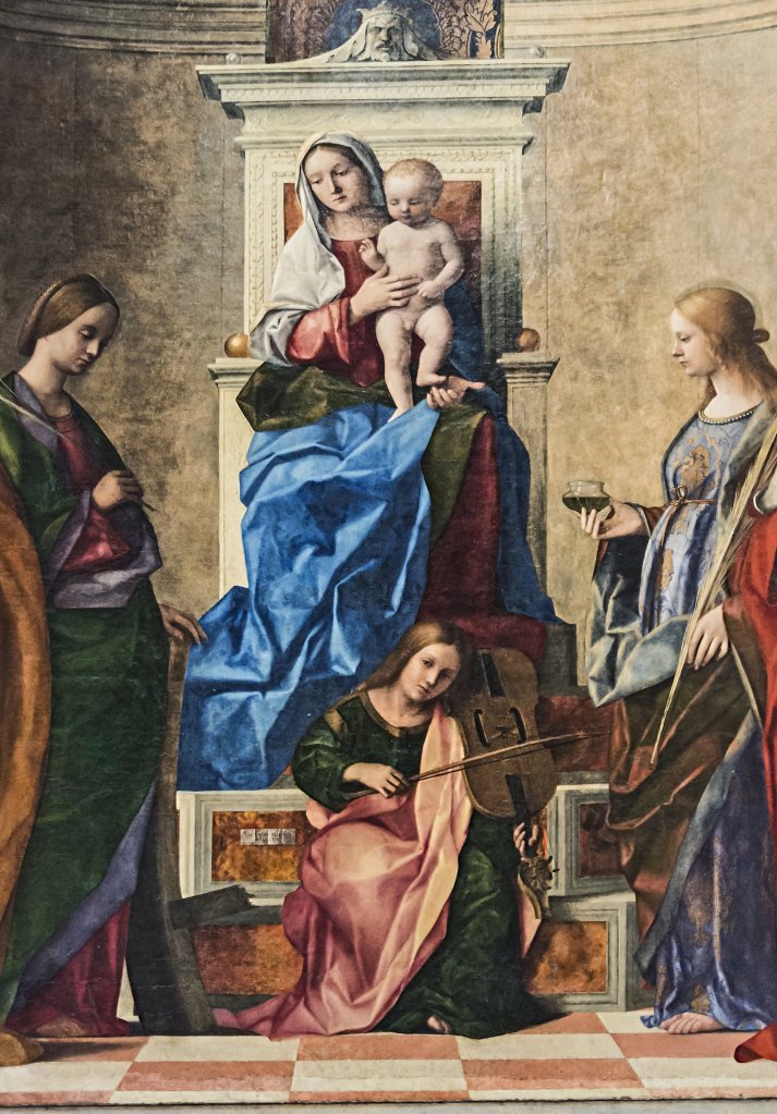 El interior es realmente impresionante ya que está literalmente tapizado de grandes cuadros realizados por importantes artistas como: Bellini, Tintoretto y Tiepolo.