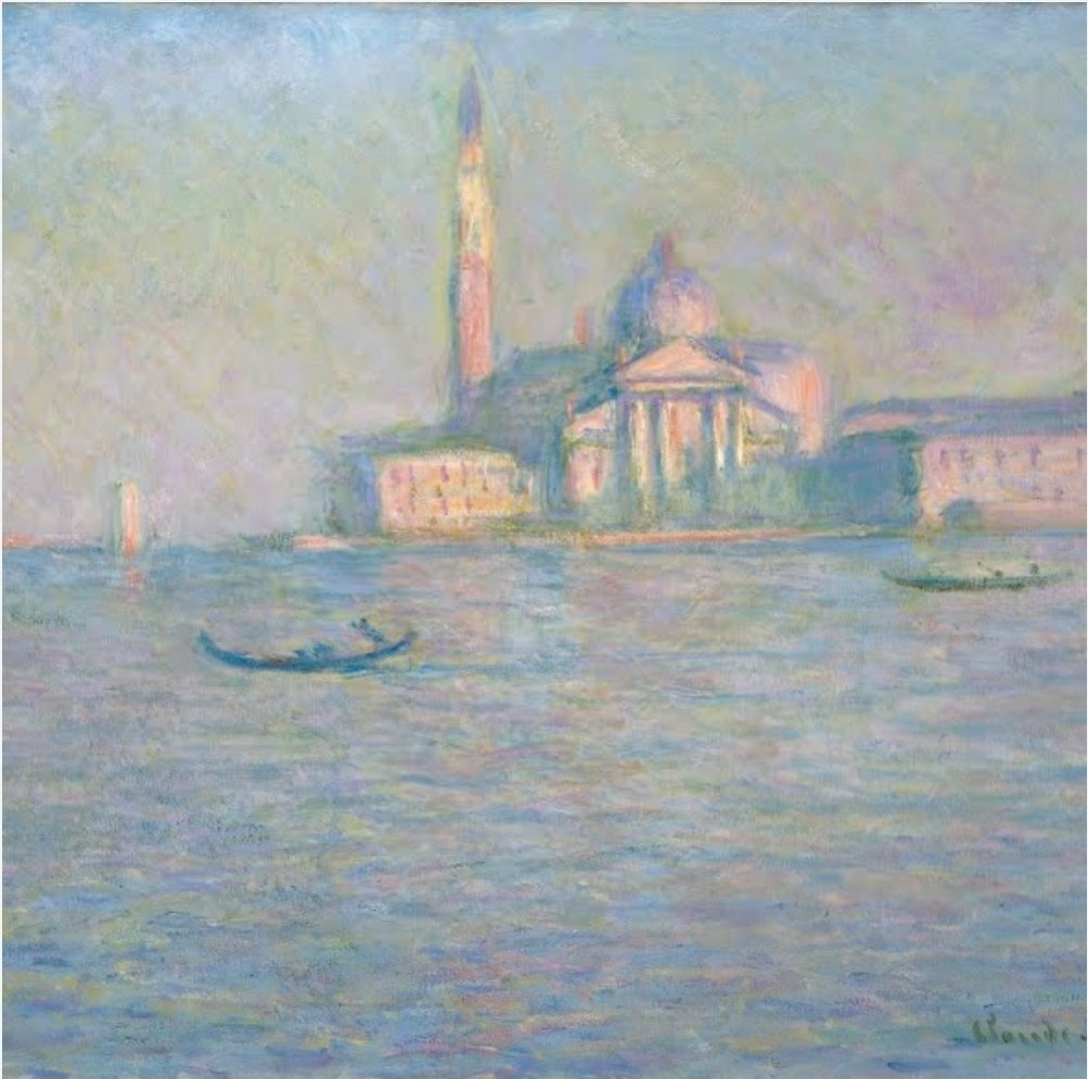 Era el mes de Octubre de 1908 cuando el gran pintor impresionista Claude Monet, de 68 años de edad, llegó a Venecia. Su estadía fue sólo de algunas semanas, pero durante estas realizó 37 telas de algunos de los puntos más iconicos de la ciudad, entre ellos: el Palacio Ducal, la iglesia de Santa Maria della Salute, la basílica de San Giorgio Maggiore, y las fachadas de algunas palacios del Gran Canal como Palazzo Dario, Palazzo Contarini y Palazzo da Mula.