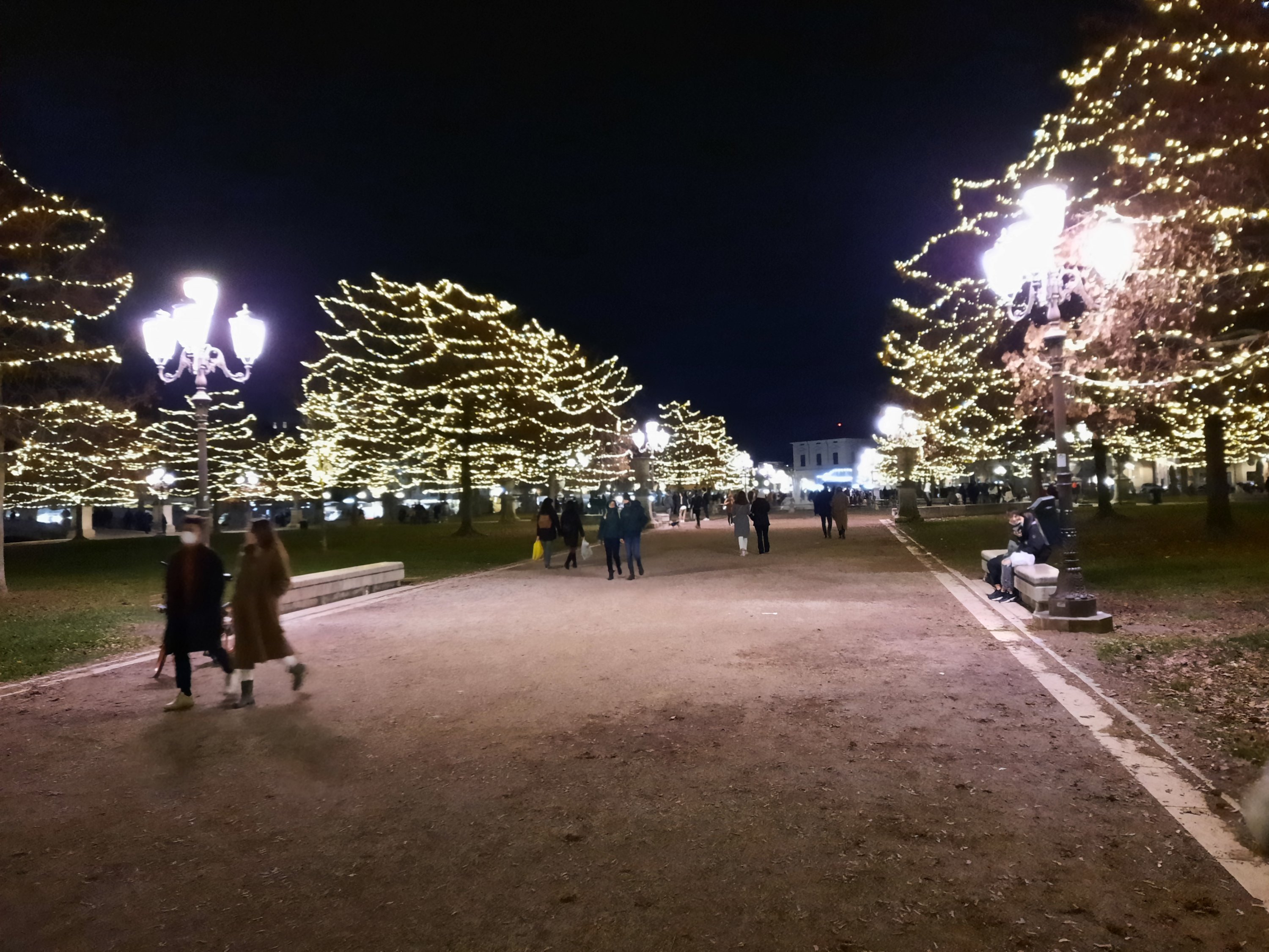 Normalmente Padova es bellisima durante el período Natalicio, pero este año lo es aún más, ya que muchos de los edificios del centro histórico fueron iluminados con fantásticos diseños y colores que nos recuerdan los numerosos ciclos de afrescos presentes en la ciudad, que pocos meses atrás fueron declarados Patrimonio Mundial de la Unesco.