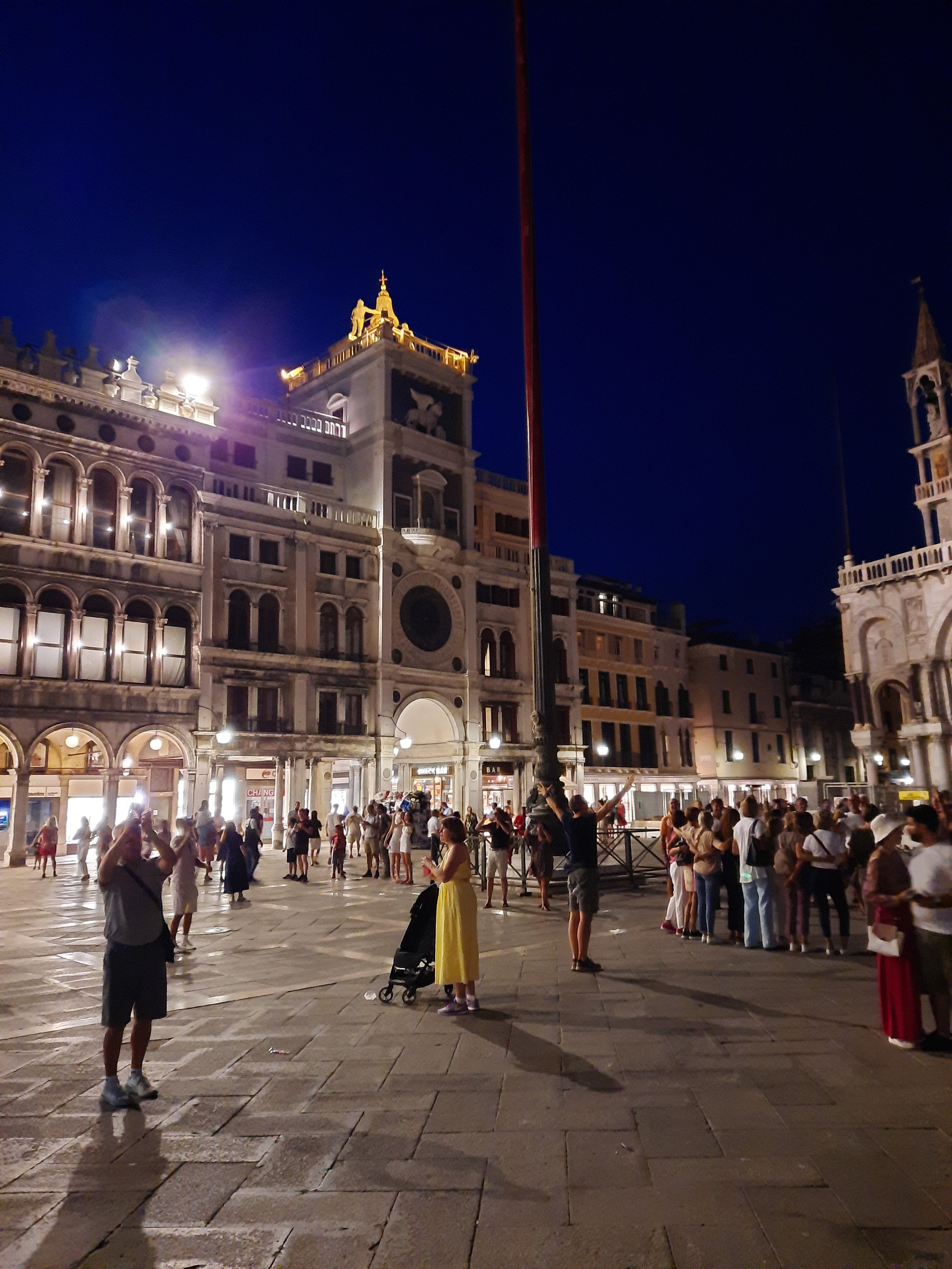 Dicen que de noche todos los gatos son negros, aunque parezca difícil creelo, el dicho se puede aplicar incluso a la plaza de San Marco. Que espectáculo!!! Todas las fotos son del Verano 2022 tomadas simplemente con mi celular…