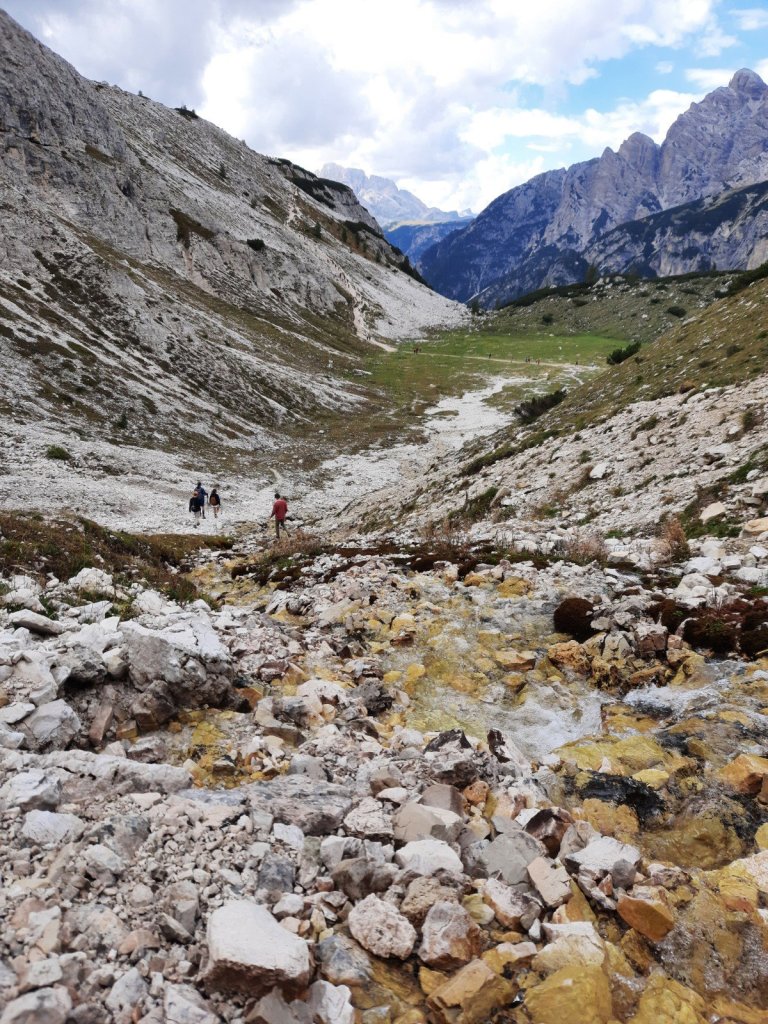El parque tiene muchos senderos con distintos grados de dificultad. El más popular es el anillo que gira alrededor de las «tre cime» que parte del estacionamiento del refugio Auronzo, pasa por el refugio Locatelli para después descender a un pequeño valle que está a los pies de las «tre cime» y subir nuevamente hasta regresar al estacionamiento. El circuito se puede hacer en tres horas, pero a mi me gusta disfrutarlo con toda calma, y normalmente me demoro 4 horas.