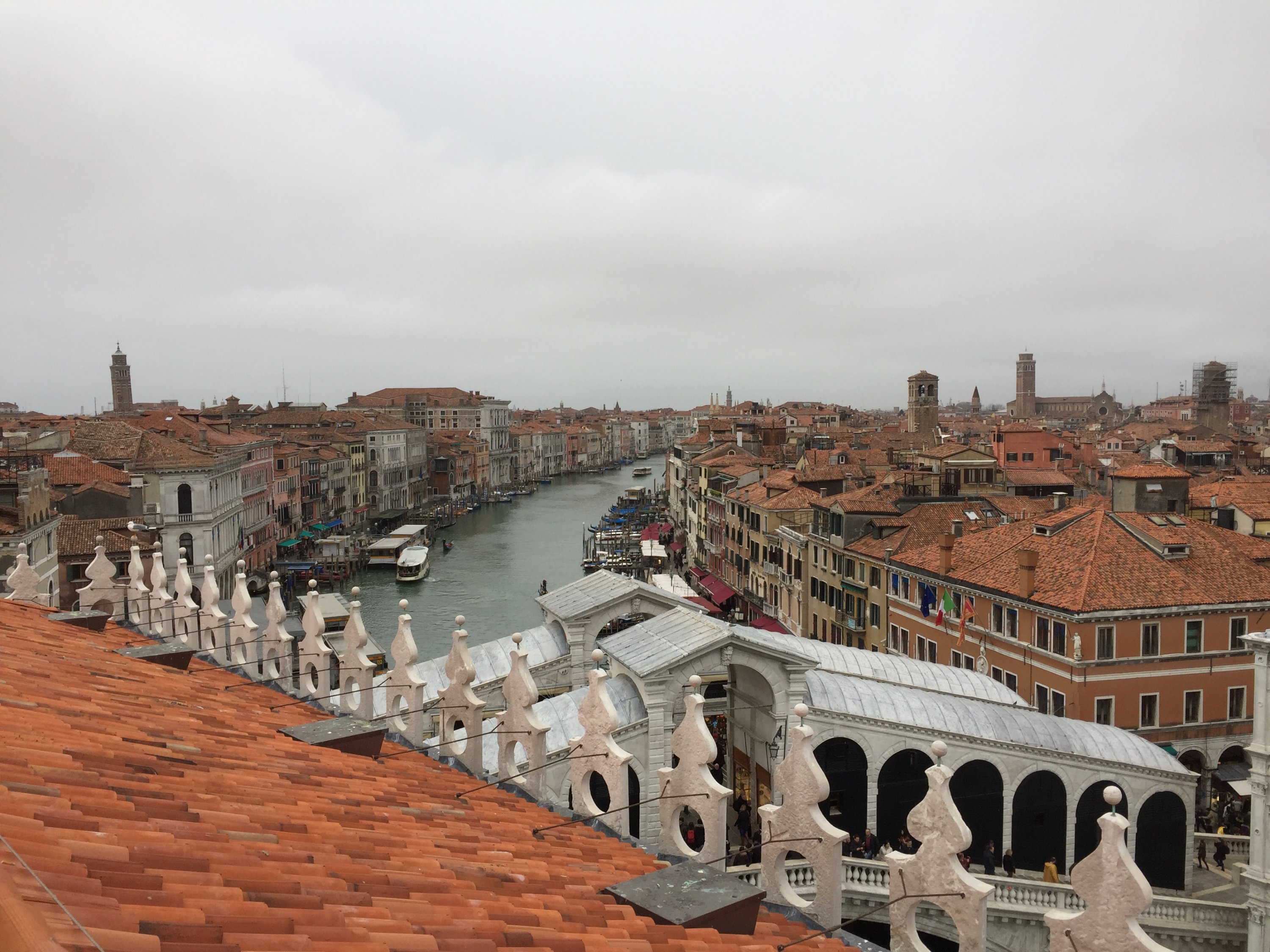 Desde la terraza ubicada en el último piso del edificio se pueden admirar una de las más hermosas vista de Venecia. Para acceder a la terraza es recomendable reservar en el sitio:
