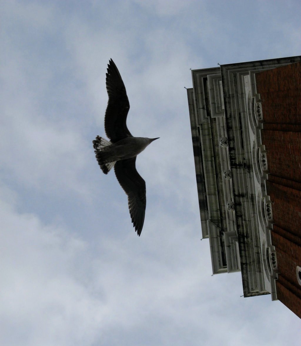 Para mi sorpresa, logré capturar la foto perfecta. La gaviota estaba claramente visible en el aire, con el campanil a su costado.