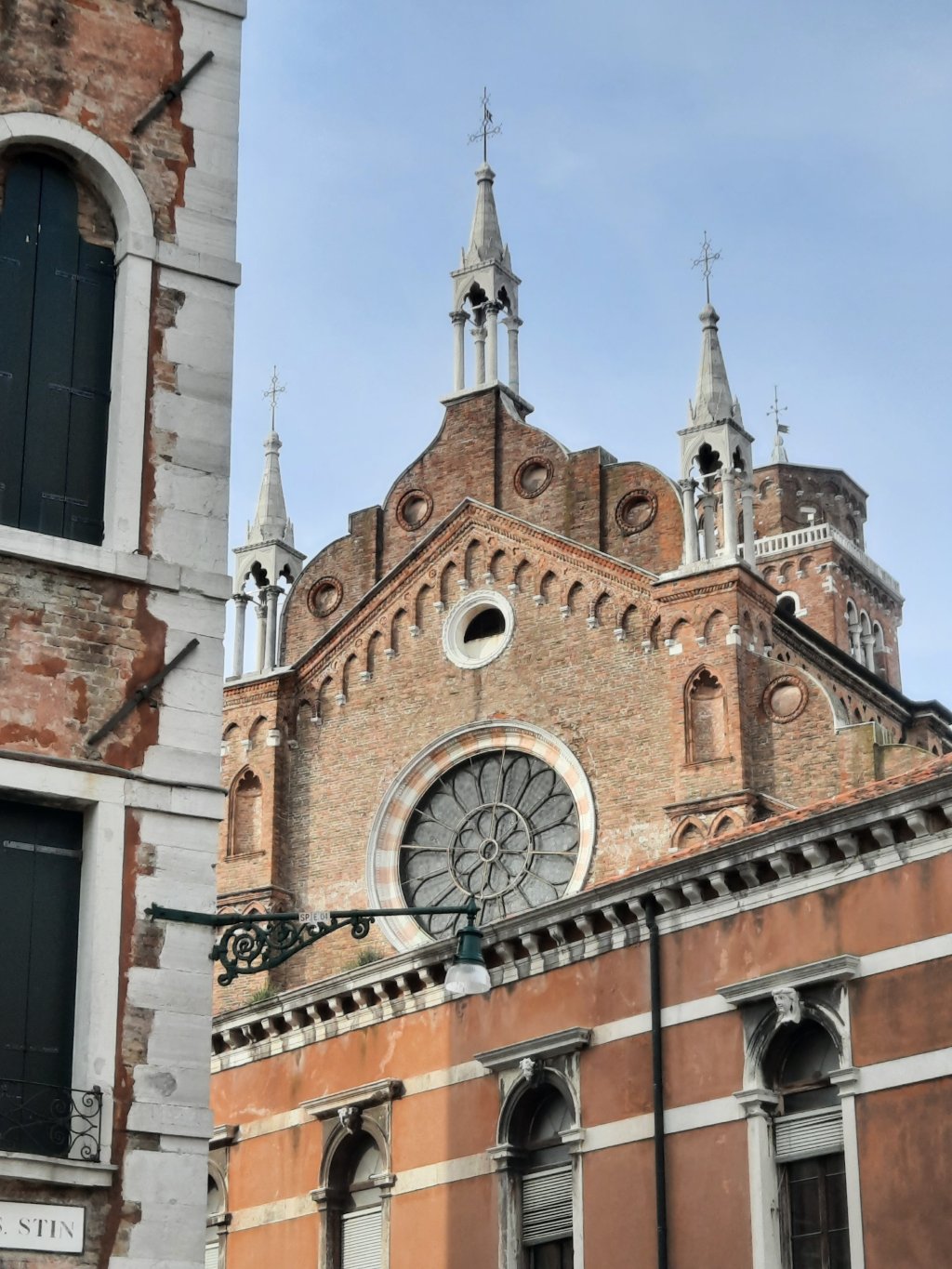 Cuando detrás de un ángulo te encuentras con una imagen así… Más información en el sitio oficial: https://www.basilicadeifrari.it/ Link para llegar al lugar de la foto.