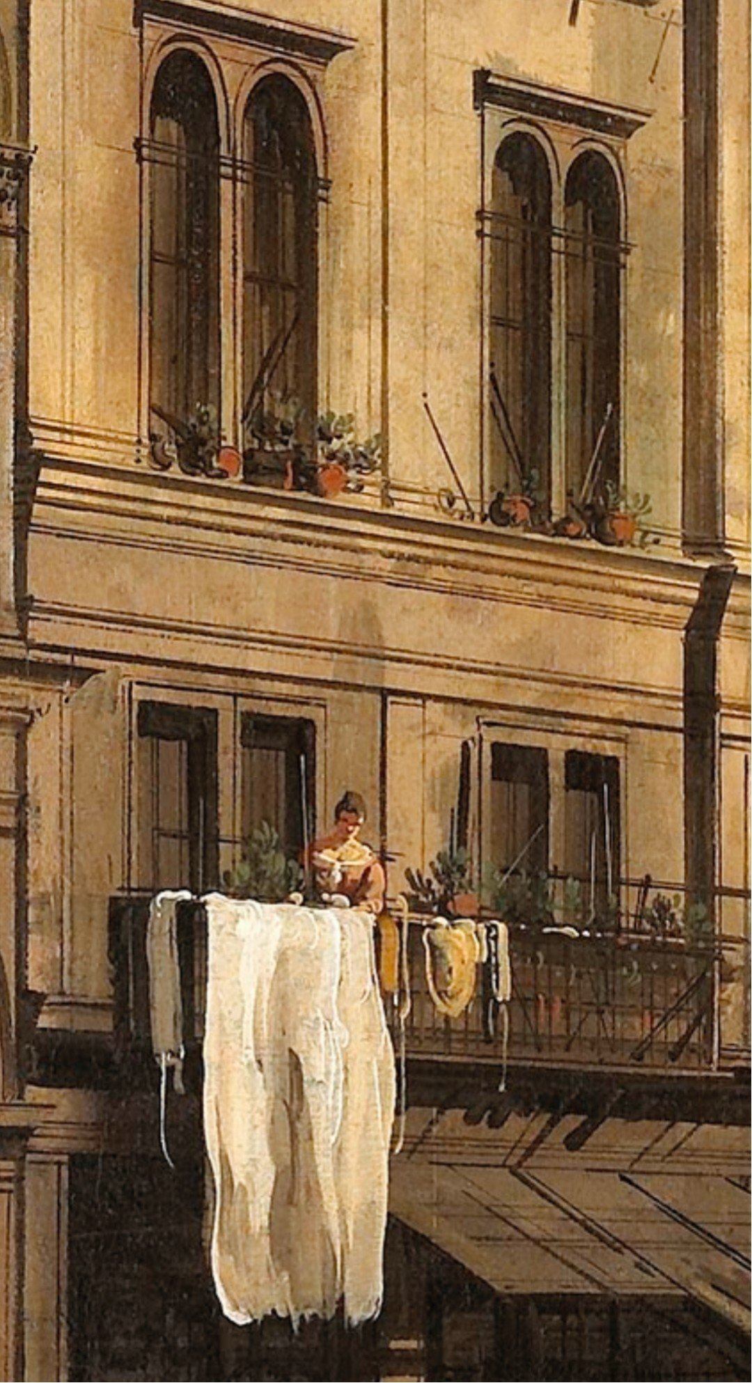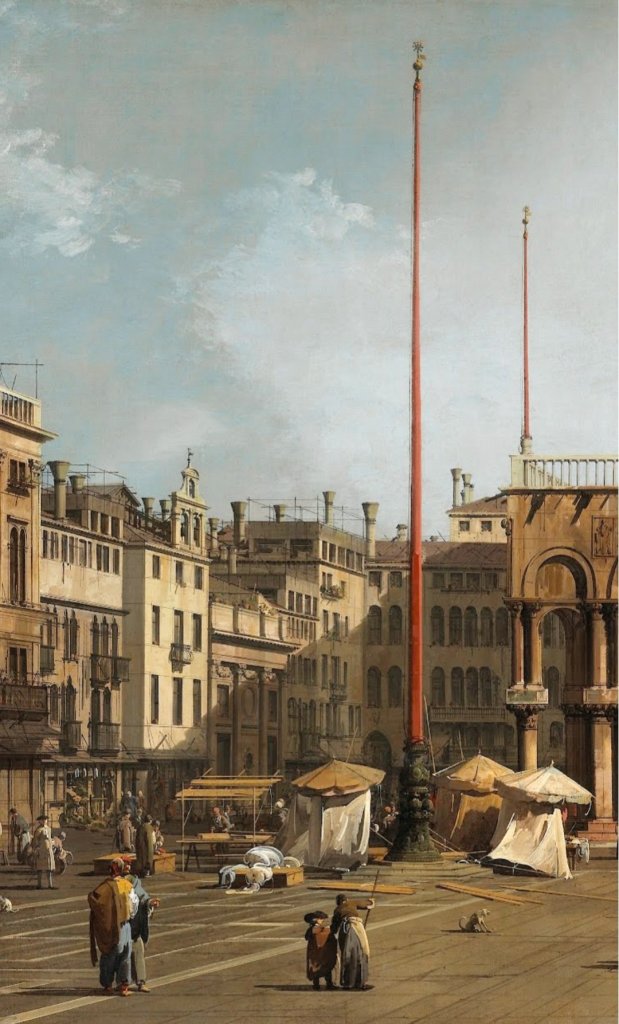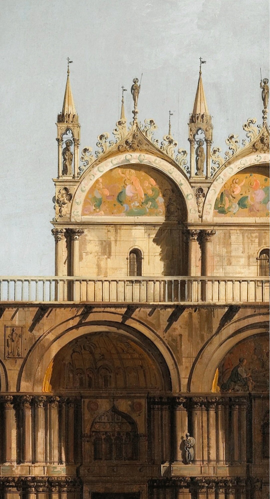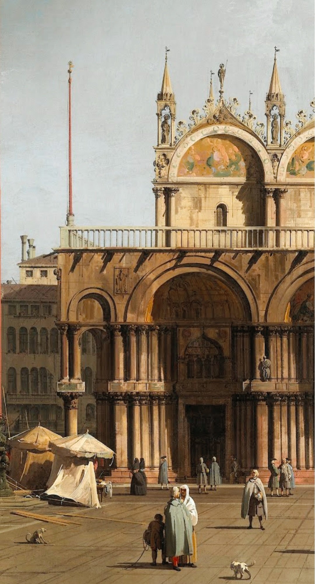 Detalles del cuadro «San Marco y la torre del reloj»pintado por Canaletto entre 1735-1737. Hoy expuesto en la «National galery of Canada».