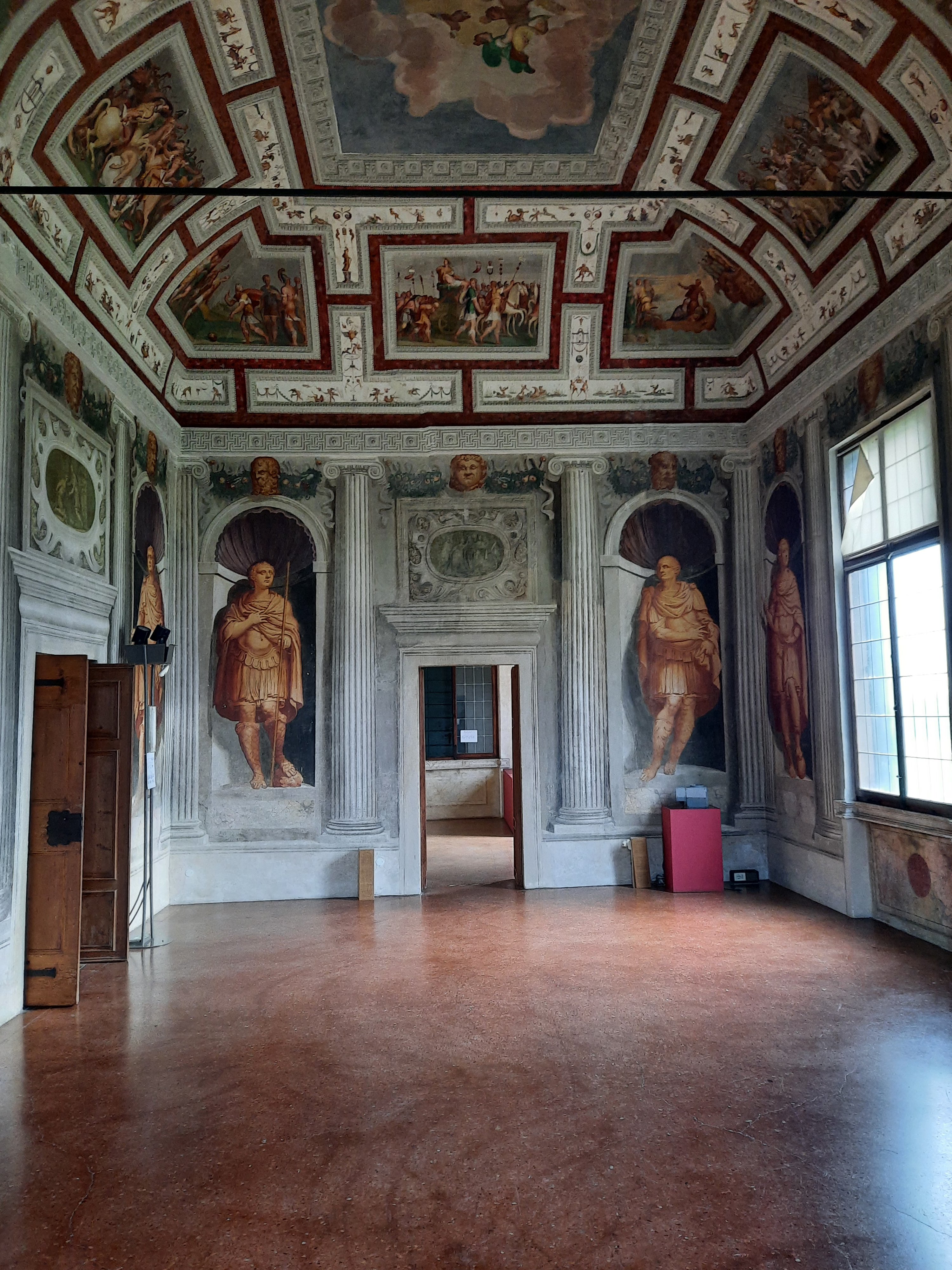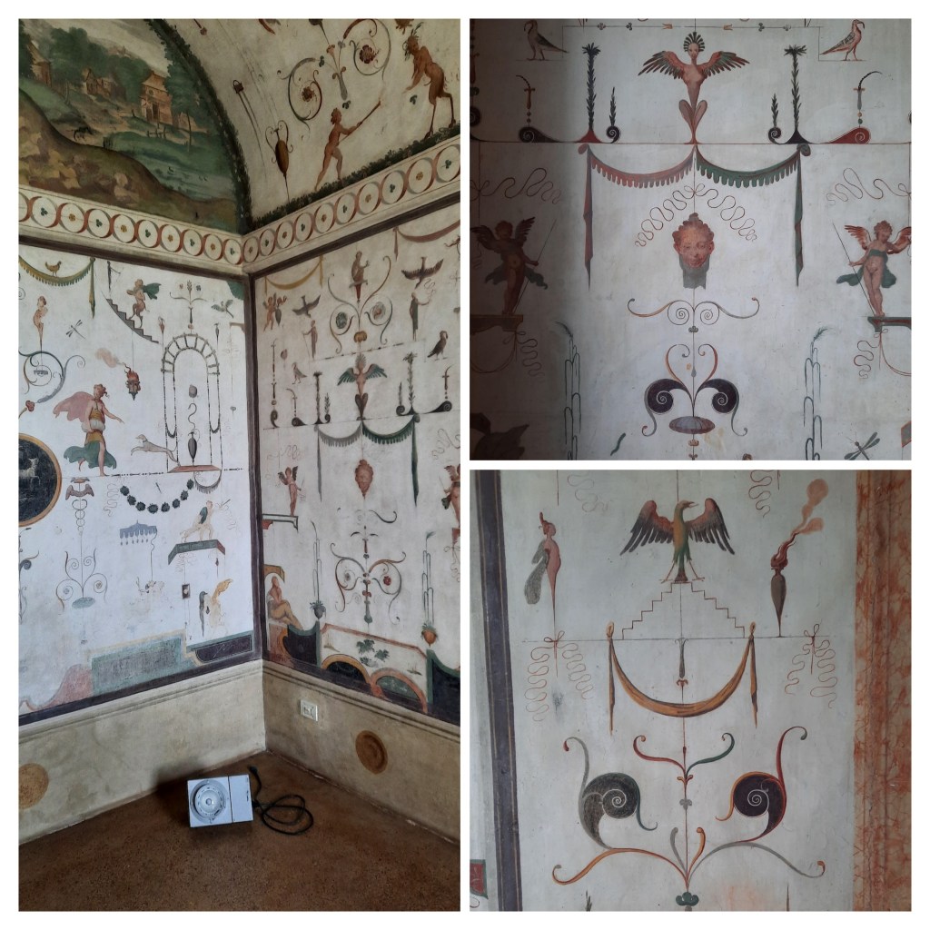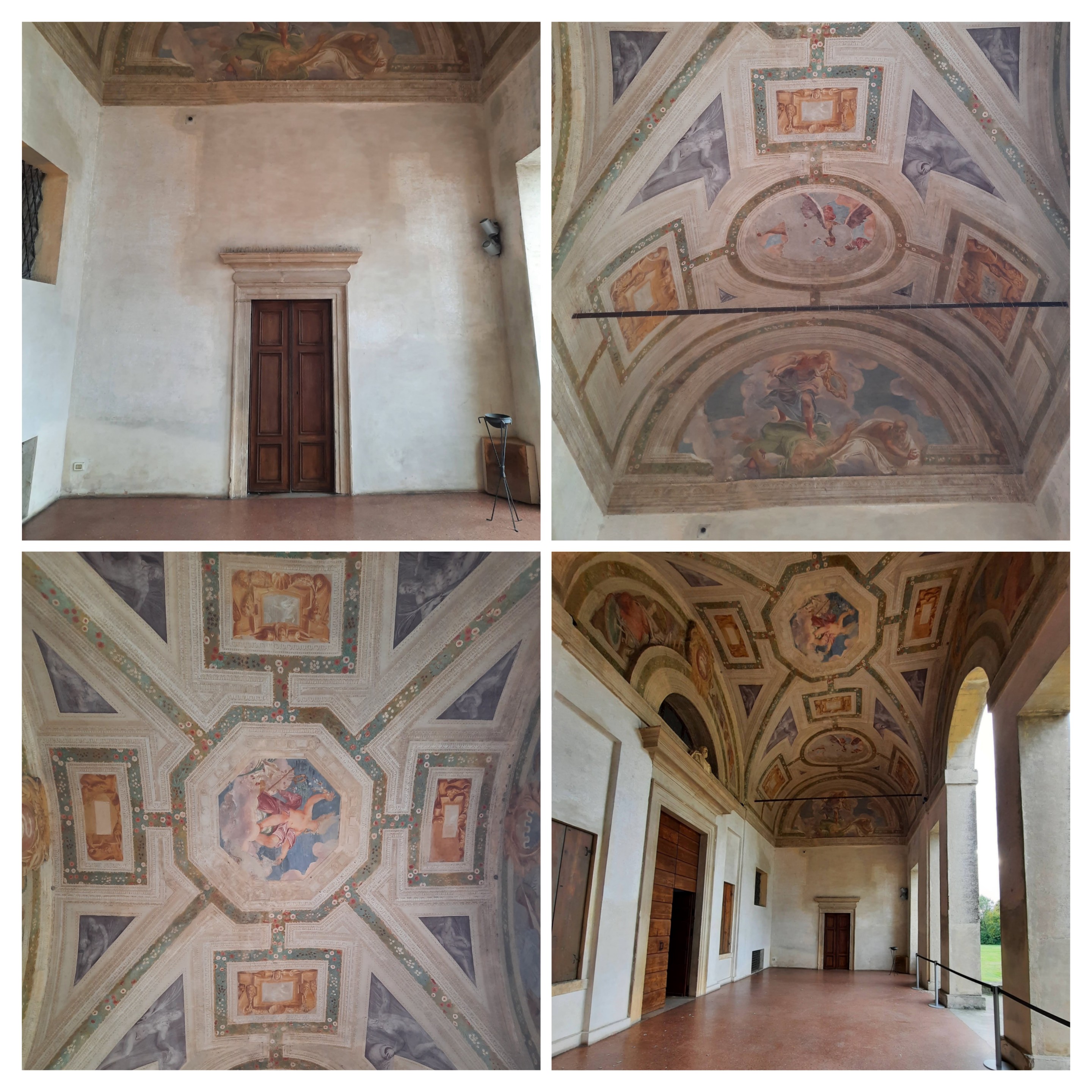Entrado al interior de la villa, nuevamente me vino esa sensación de estar simplicidad y austeridad, ya que las primeras salas carecen casi totalmente de decoraciones, donde sólo es posible concentrarse en los elementos arquitectónicos del edificio. Poco a poco, sin embargo se llega a algunas salas ricamente afrescadas.