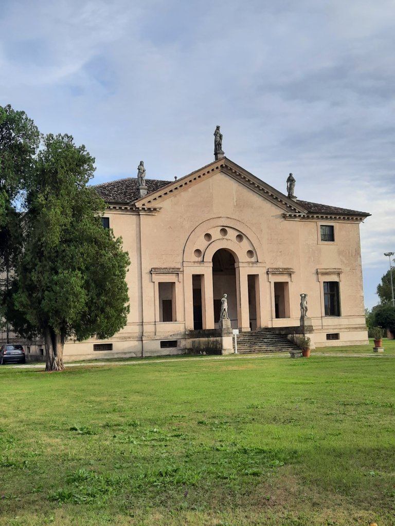 Desde hace muchos años que paso con frecuencia por delante de la Villa Pojana, y nunca que habia detenido a visitarla. Cada vez, me admiraba su elegante simplicidad y armonia en medio a ese gran patio cubierto de verde, es decir de la esencia del estilo de Palladio.