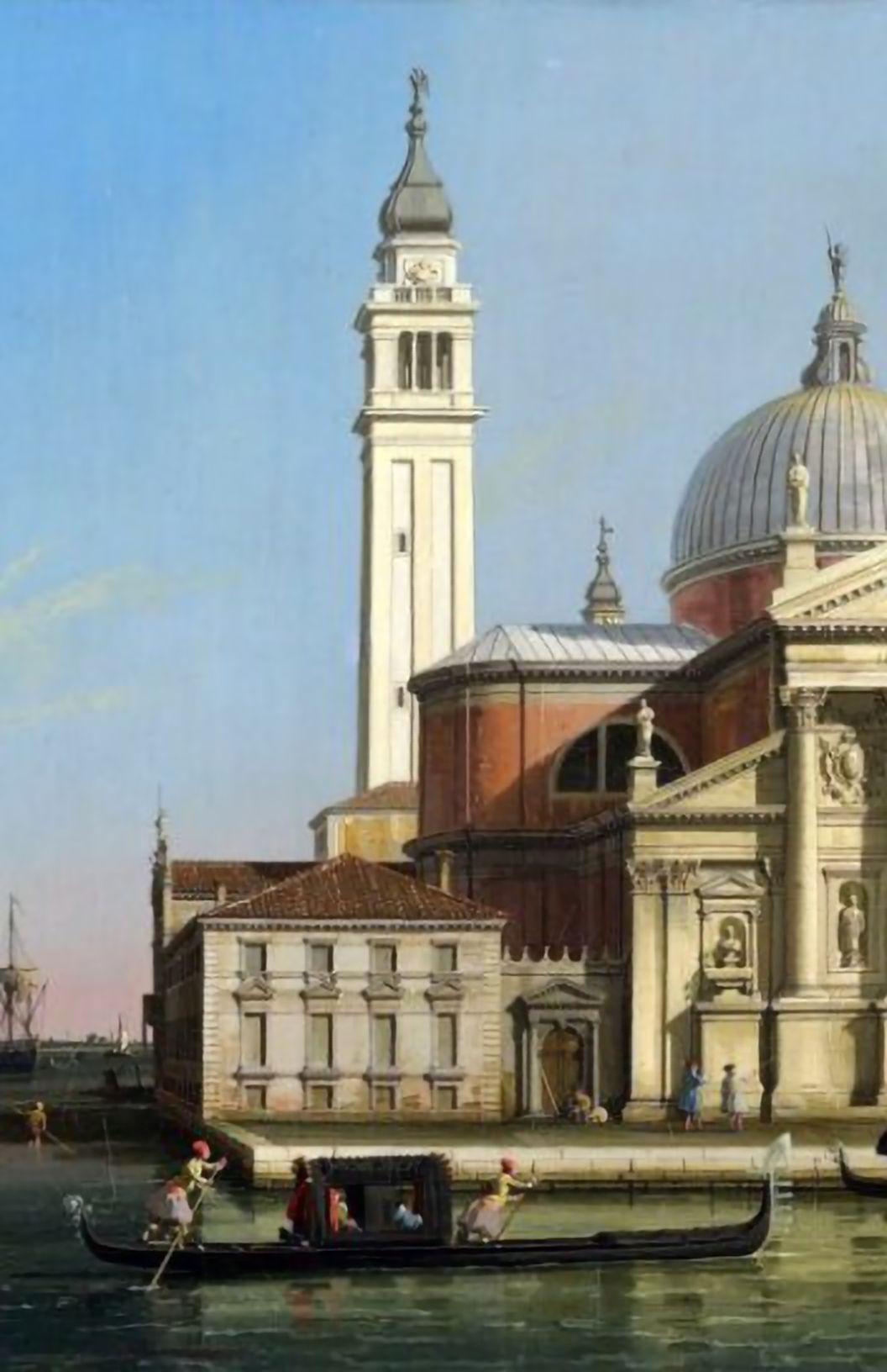 De hecho el campanile del cuadro ahora no existe ya que se cayo en 1774. El actual campanile fue proyectado por el architecto Benedetto Buratti y fue construido alrededor de 1791.