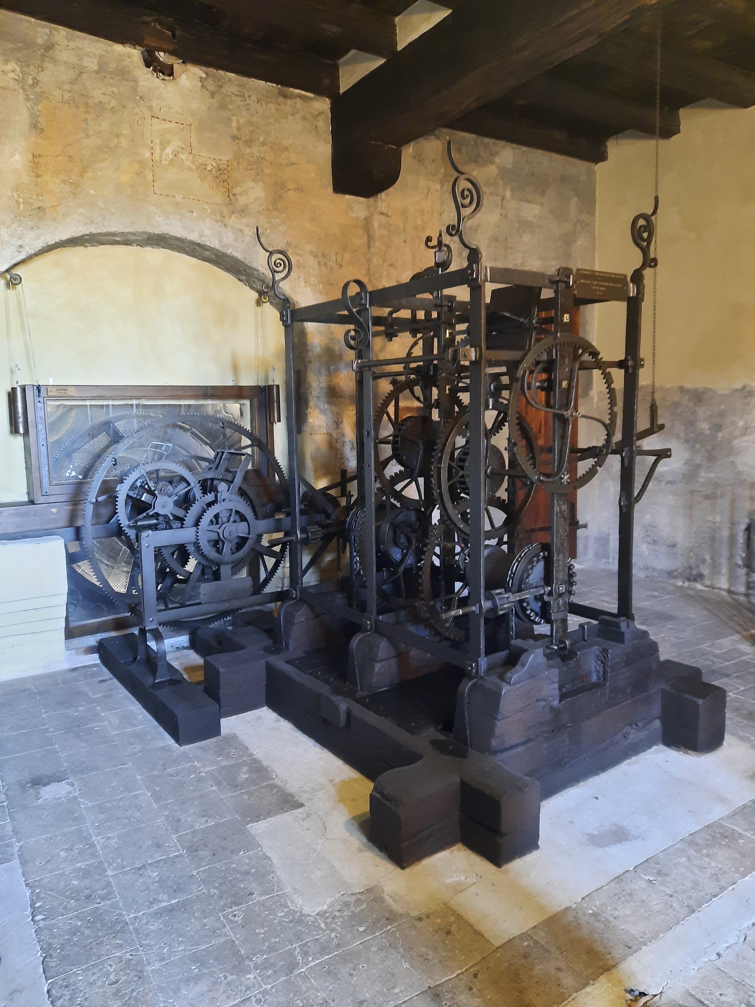 Cuando estábamos viendo los mecanismos del reloj, fue justo medio día, y todos los engranajes y piezas del reloj comenzaron a moverse y accionaron las campañas. Tuvimos mucha suerte ya que así pudimos entender mejor su funcionamiento.