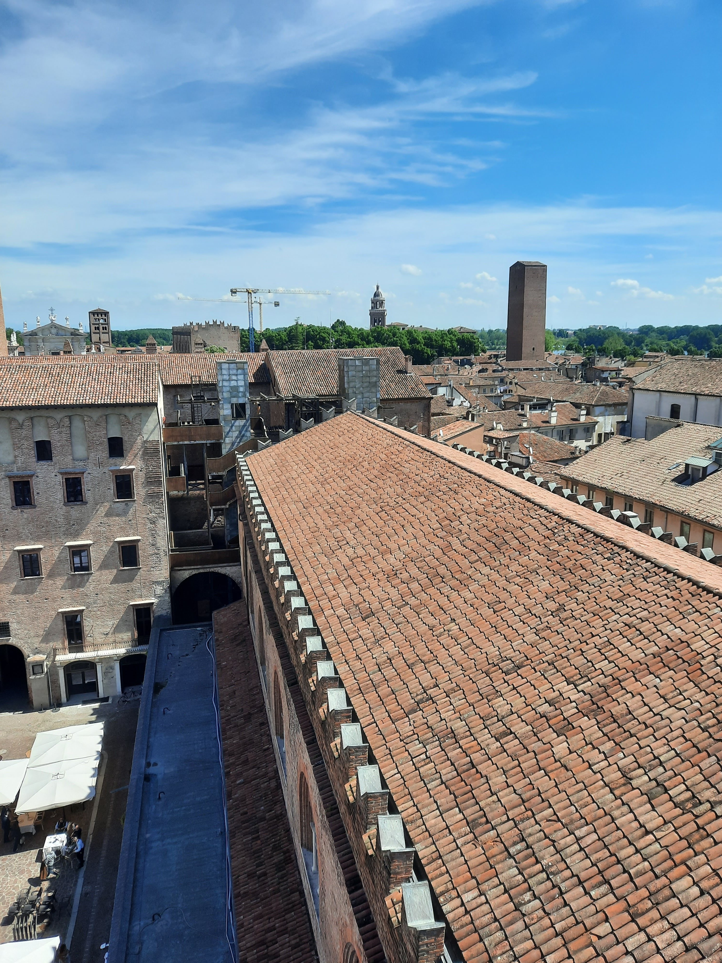 La visita a la torre me gustó mucho, no solo por haber podido admirar el reloj desde el interno, sino también por el impresionante panorama que se abre en el último piso de la torre, donde se puede contemplar una de las vistas más bellas de la ciudad de Mantova.