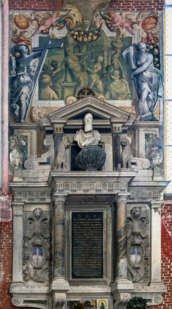 En un inicio los restos del Bragadin fueron llevados a la iglesia de San Gregorio pero en 1596 fueron trasladados a la Basílica de los Santos Giovanni e Paolo, donde en encuentra todavía.