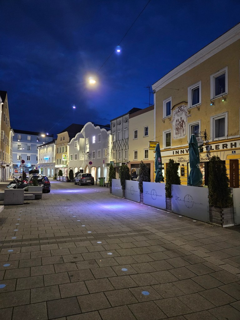 Esta semana fui a Austria a visitar una fábrica de maquinaria agrícola y dormí en el pequeño pueblo de Ried, un lugar nada de especial, pero de noche sus casas coloradas le daban un toque especial….