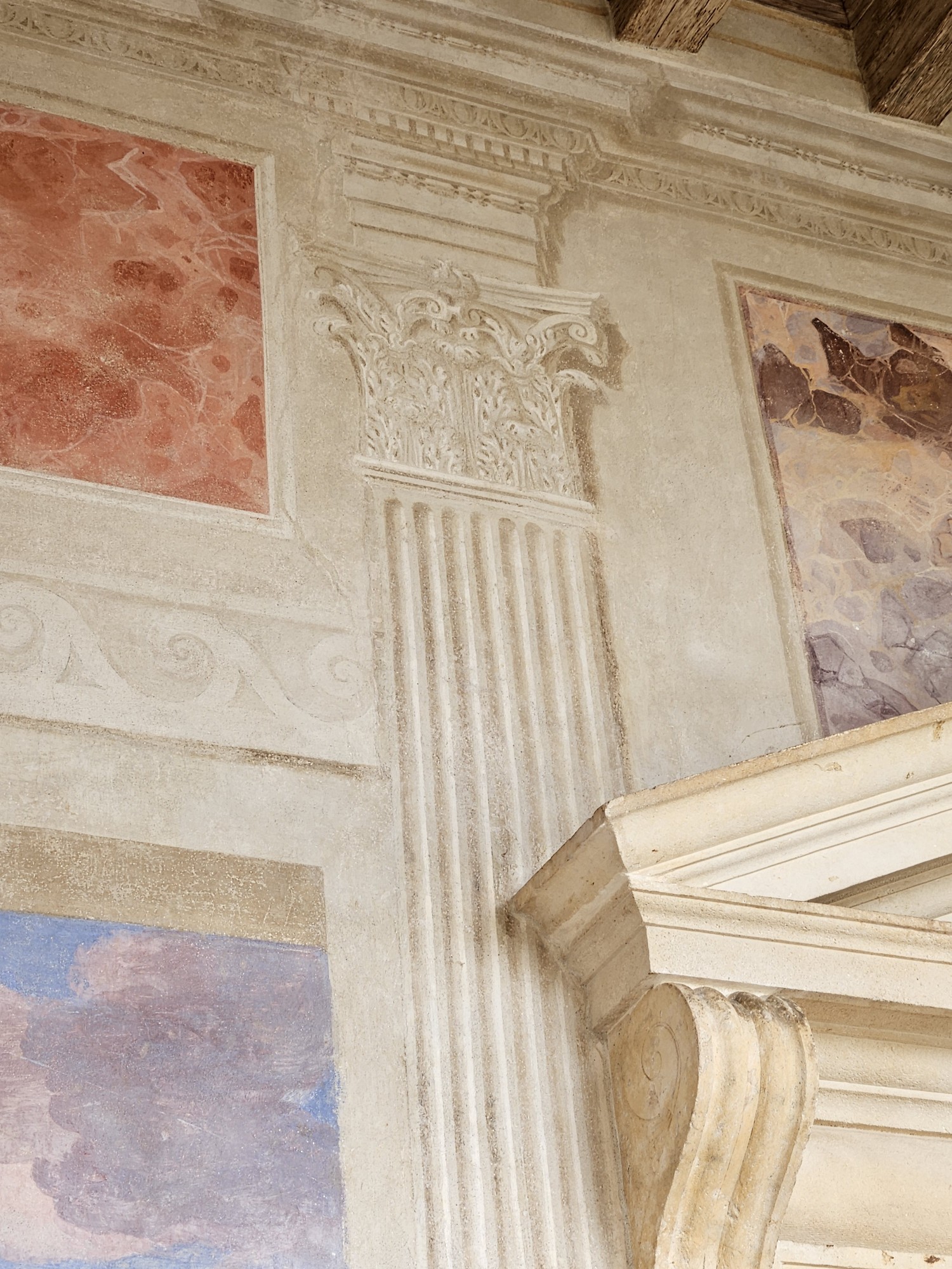 Producto de los restauros fue posible demostrar que los muros de la villa no tenían ningun tipo de pintura o decoración a excepción del atrio.