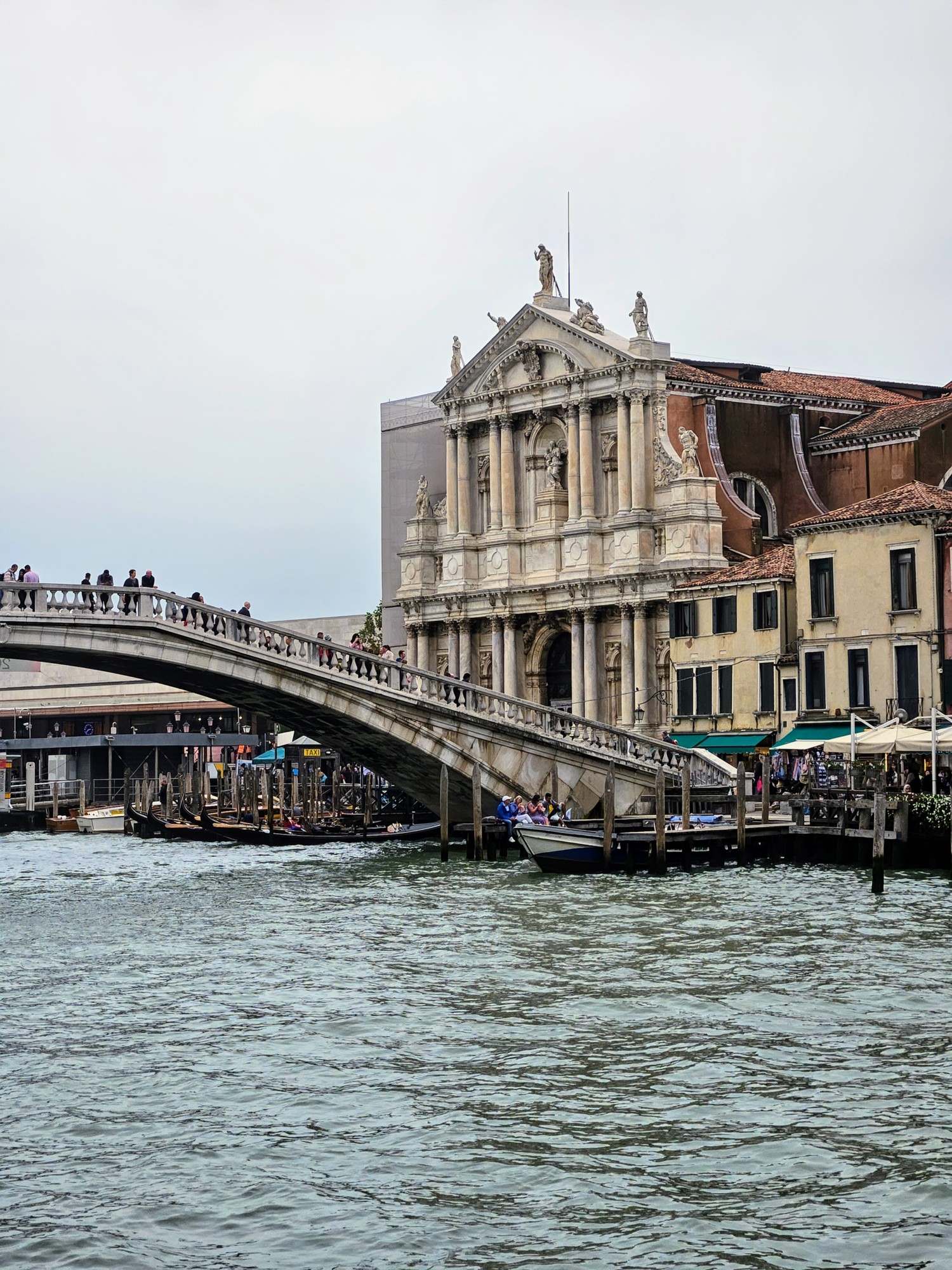 El Ponte degli Scalzi es uno de los cuatro puentes que cruzan el Gran Canal de Venecia, situado cerca de la estación de tren de Santa Lucía. Inaugurado en 1934, sustituye a un puente anterior de hierro fundido construido en 1858 por el ingeniero Alfred Neville. El nuevo puente, diseñado por Eugenio Miozzi, es de piedra de Istria y tiene un solo arco, lo que permite el paso de embarcaciones. El nombre deriva de la cercana iglesia de Santa María de Nazaret.