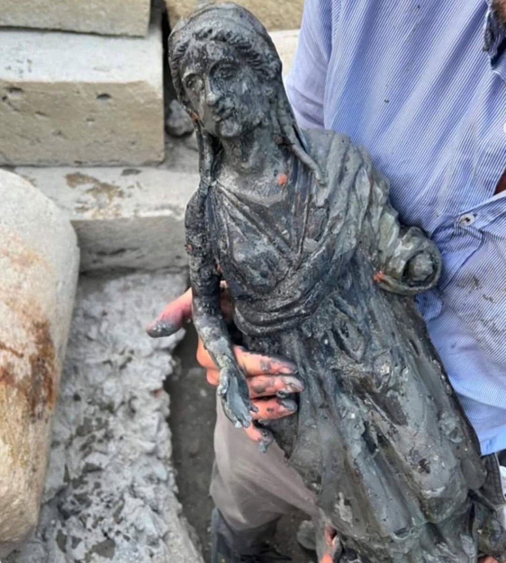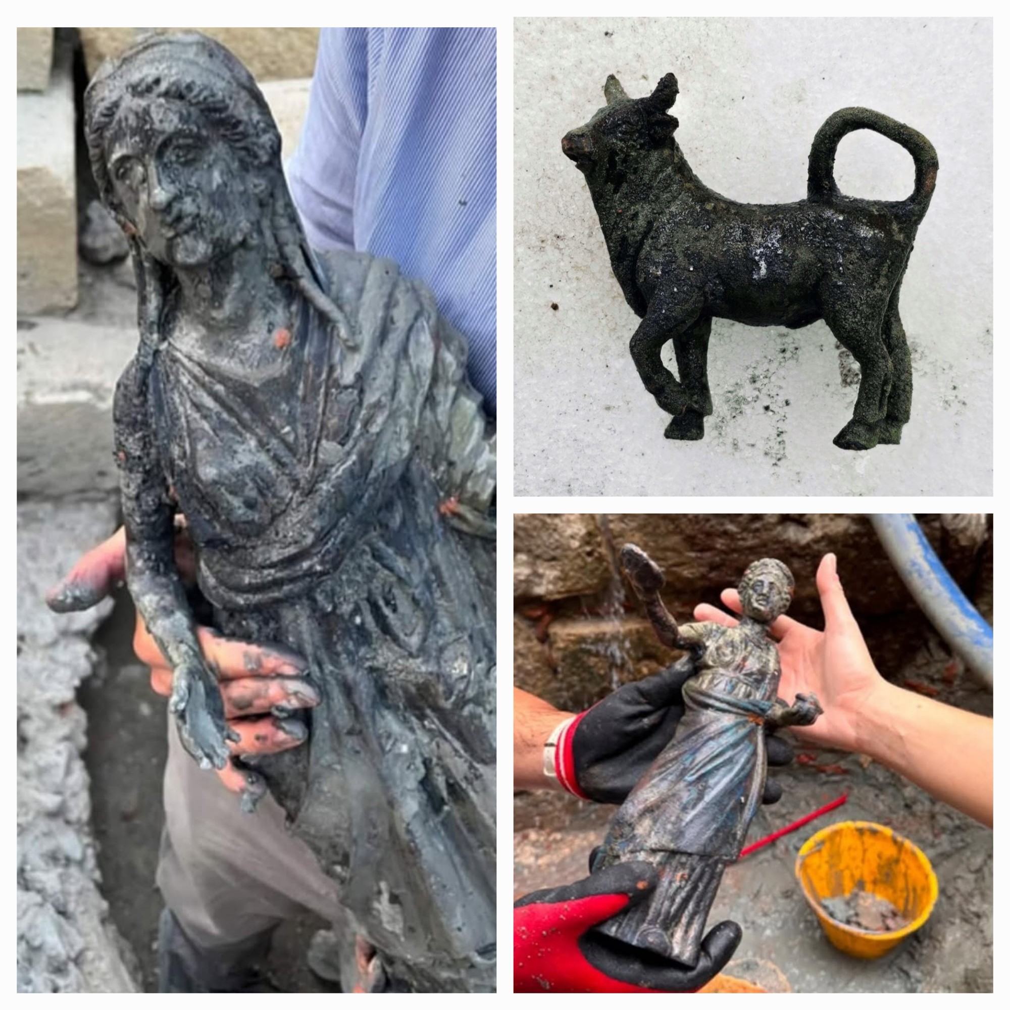 La excavación ha sacado ahora a la luz gran parte de la piscina más antigua, reconstruida posteriormente entre los reinados de los emperadores Tiberio y Claudio. Si en el exterior del templo han salido a la luz sobre todo, los restos de ofrendas y ceremonias que tuvieron lugar a lo largo de los siglos, con deposiciones de lámparas de aceite, ungüentarios de vidrio, bronces votivos, exvotos de terracota pintada e incluso hojas de oro, es en el interior del estanque sagrado donde la estratificación de los dones votivos sigue restituyendo una gran cantidad de objetos protegidos por el agua termal y el barro arcilloso, a casi 5 metros de profundidad.