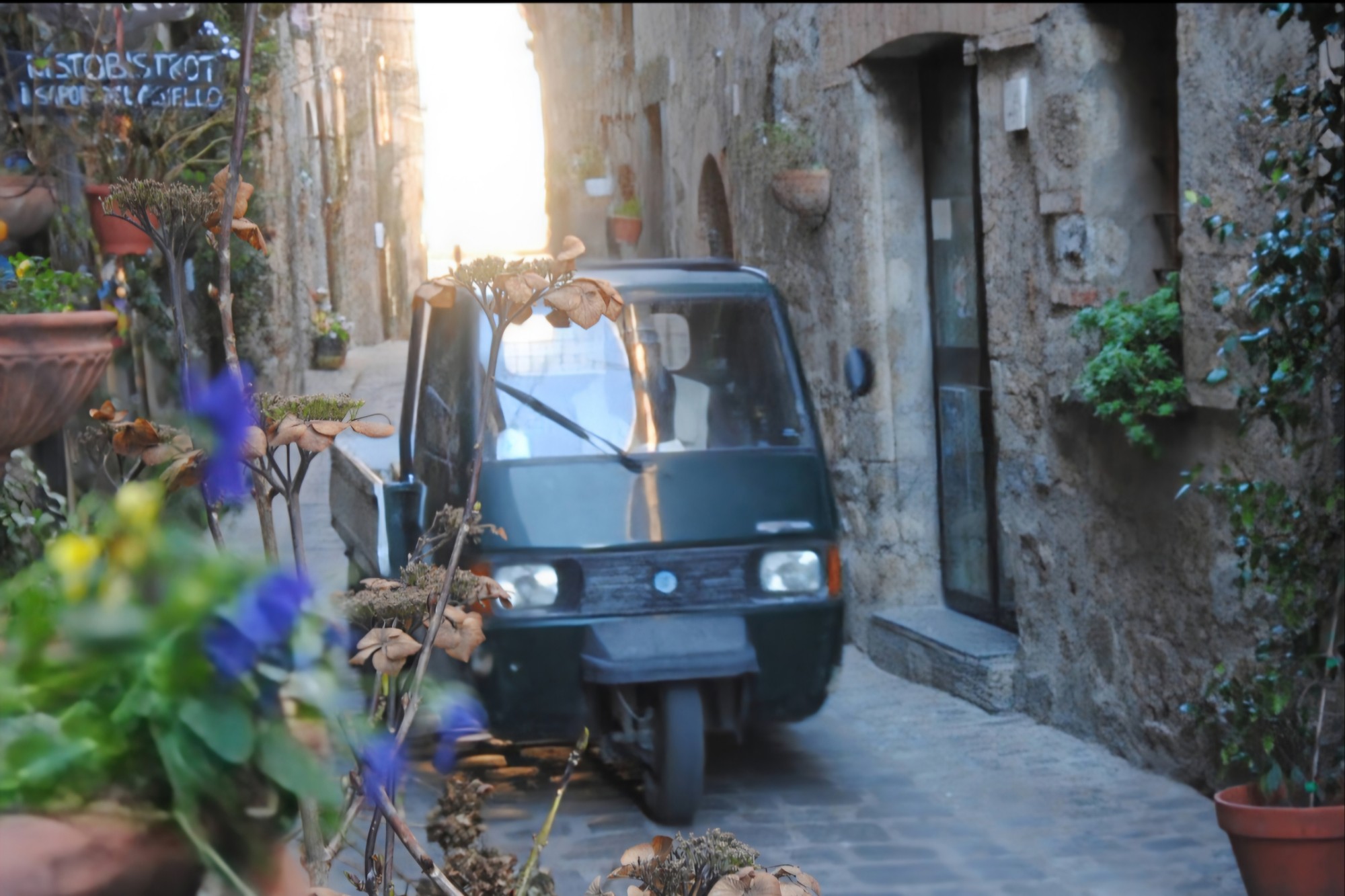 Que mejor lugar para un Ape que las estrechas callejuelas de un pueblo medieval…