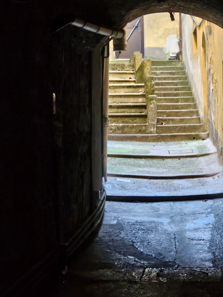 Recorriendo Volterra encontré estas escaleras al fodo de una de sus estrechas callejuelas. Derecha o izquierda, ¿cuál me llevará a mi destino?