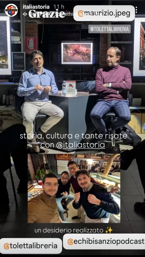 Hoy fuimos a Venezia para la presentación del libro «quando Venezia distrusse l’impero Romano» y Finalmente conocí a Marco Cappelli el autor de podcast Storia de Italia…