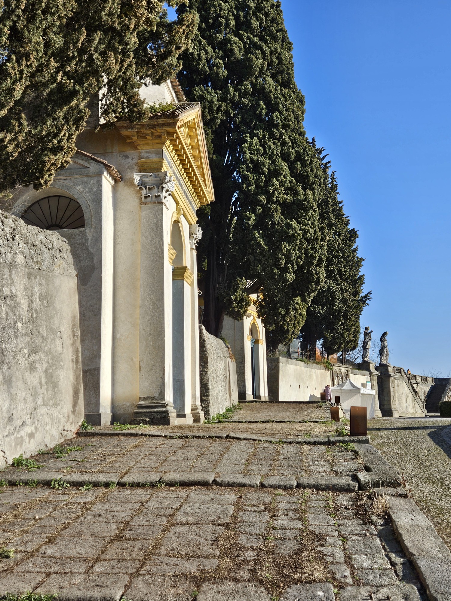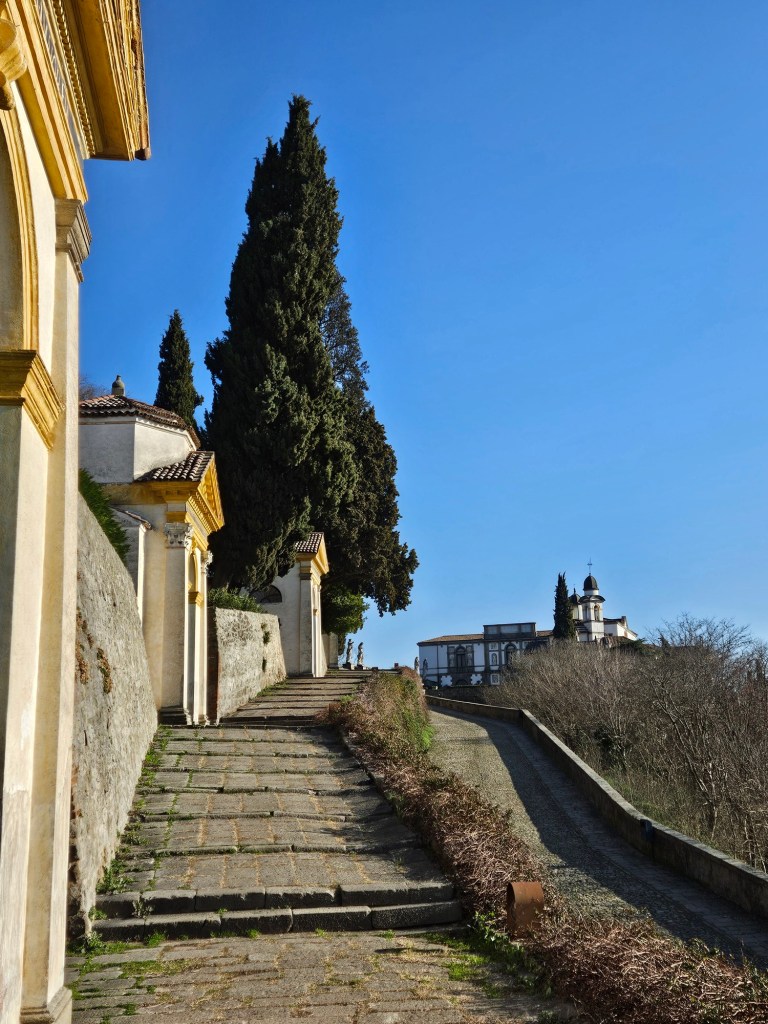 El arquitecto Vincenzo Scamozzi fue el responsable de la construcción de la villa y de las capillas, que representan simbolicamente un especie de réplica una miniatura de la Ciudad de Roma y de sus siete basílicas.