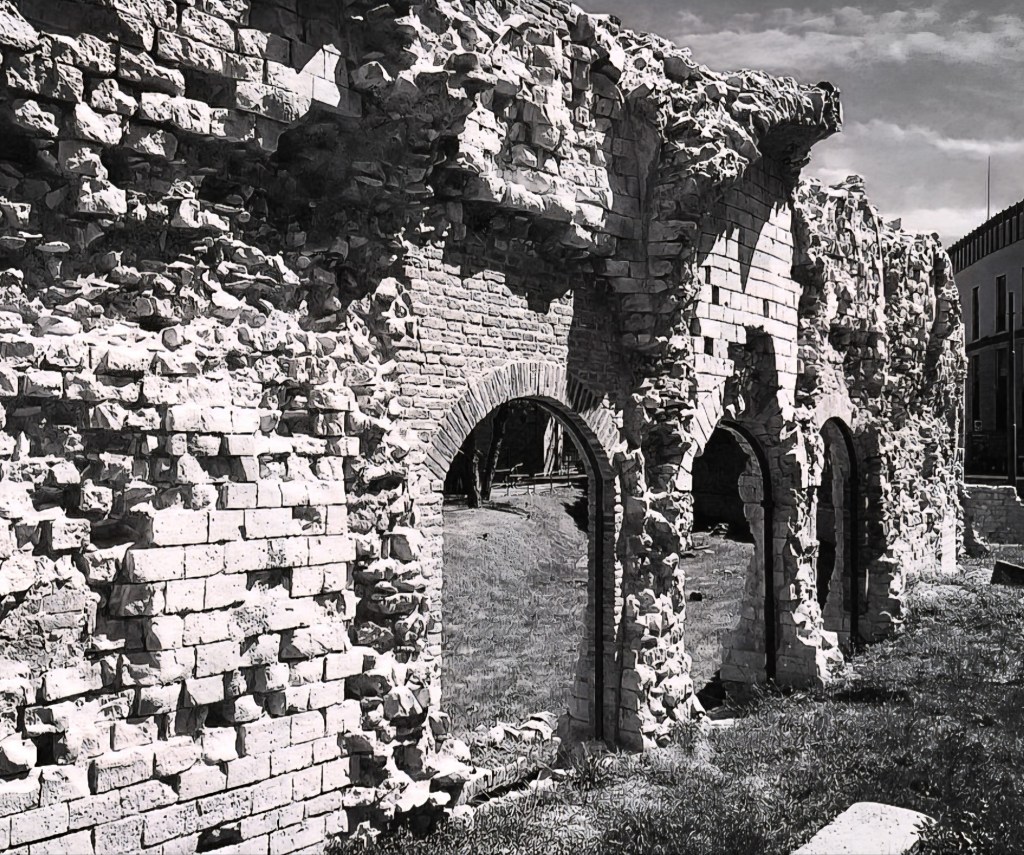 En 1880, tras la compra por parte del municipio de Padua de la Capilla Scrovegni y la zona de la Arena, Antonio Tolomei, concejal y entonces alcalde de la ciudad, organizó una primera campaña de excavaciones, dirigida por el arquitecto Eugenio Maestri para sacar a la luz el antiguo edificio.