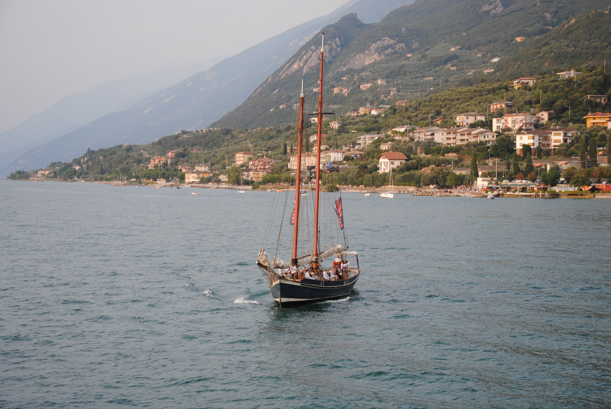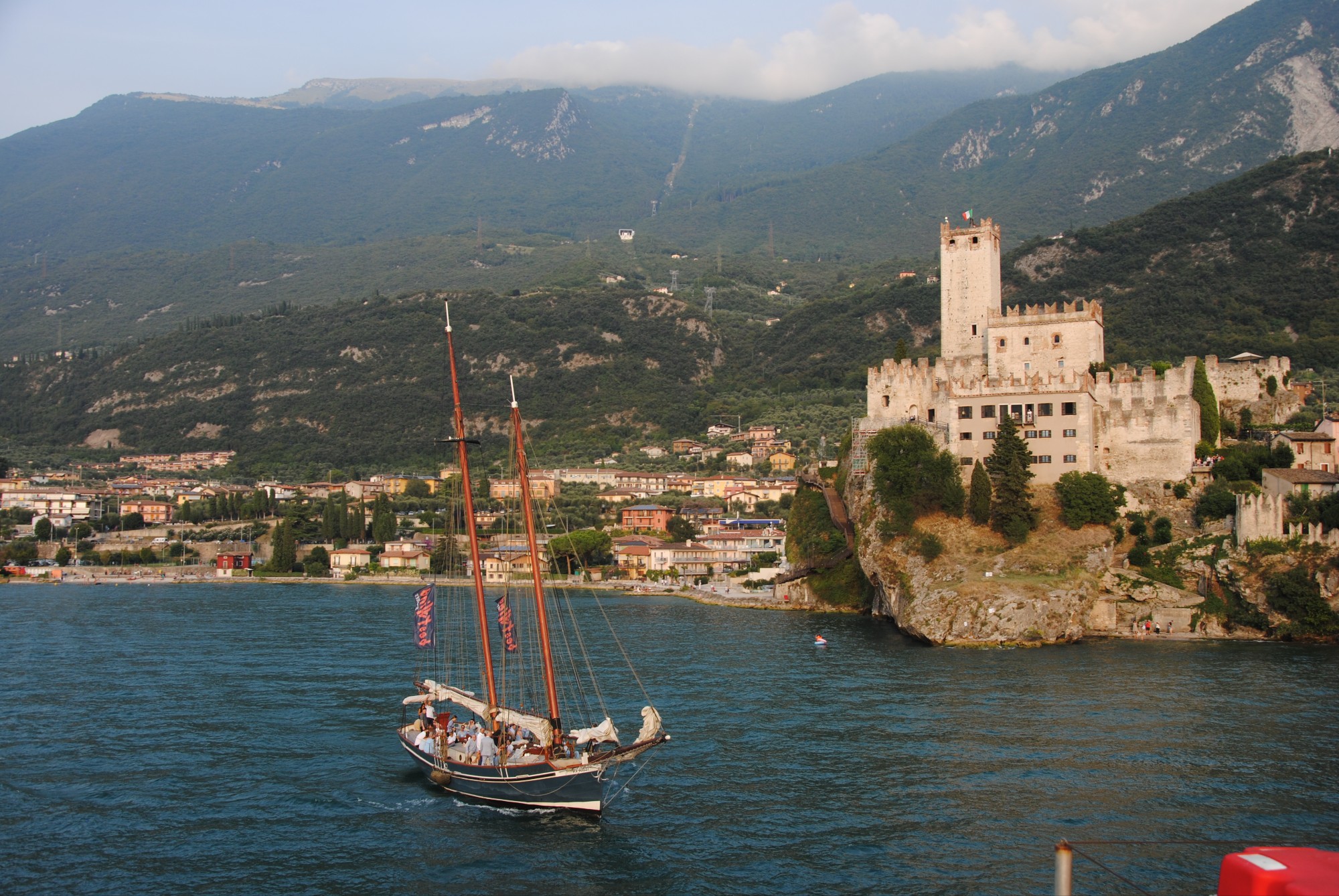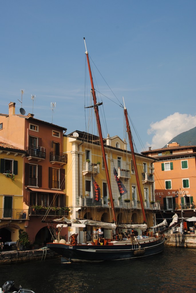 Cuando hace pocos días visitamos Malcesine, en su bellísimo puerto, encontramos este velero que al parecer realiza viajes turísticos en el lago di Garda.
