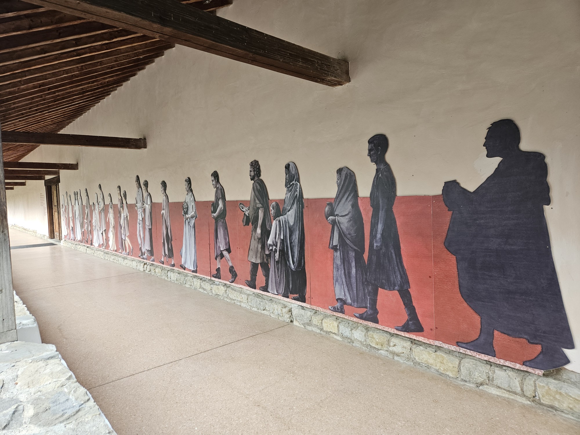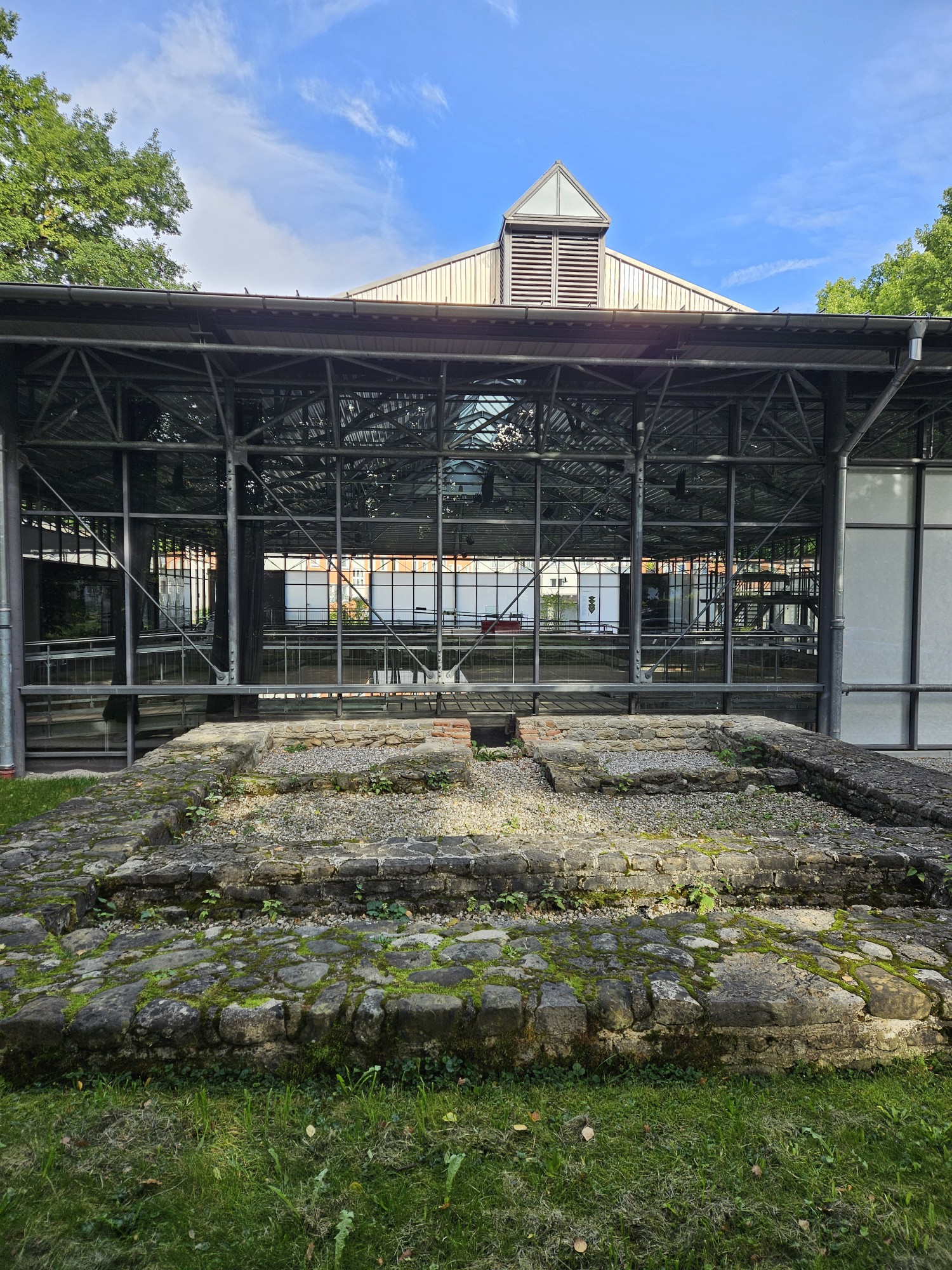 Las termas que formaban parte del palacio del gobernador provincial, incluyendo la sala de agua caliente (caldarium) con un sistema de calefacción por hipocausto protegido por un edificio moderno para su conservación.