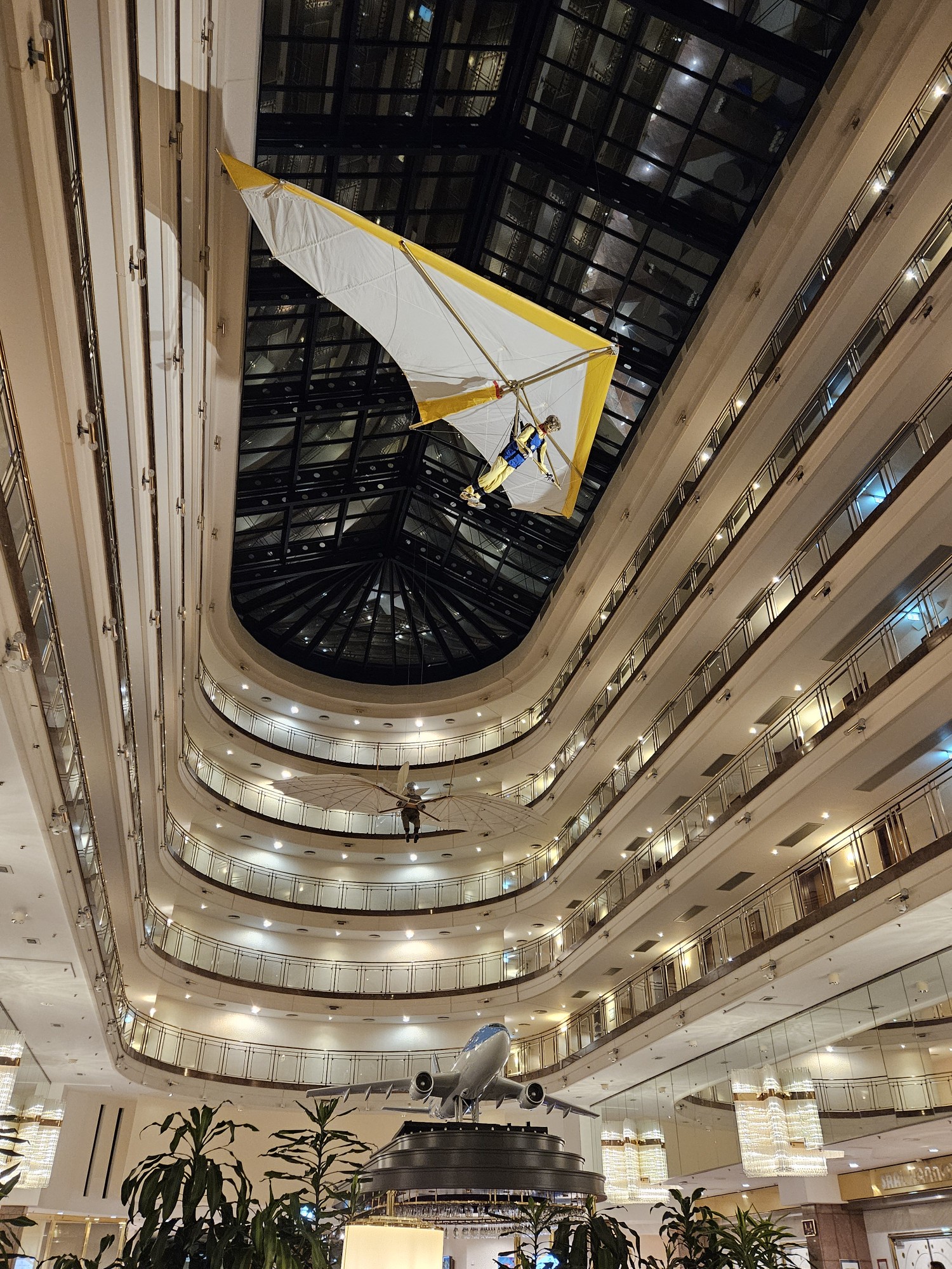 El hotel del aeropuerto de Hannover en Alemania tiene un inmenso hall central adornado con distintas maquinas volantes…muy interesante!!!