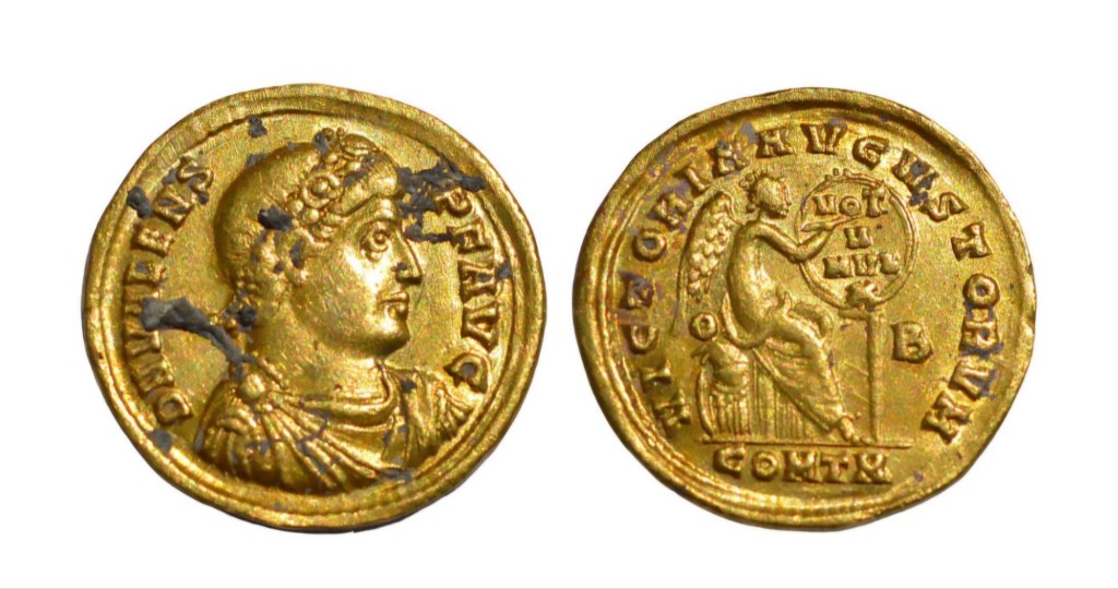 El descubrimiento más destacado son tres raras monedas de oro, acuñadas durante el siglo IV d.C., de los emperadores Valente, Magno Máximo y Arcadio. Estas piezas no parecen haber estado en circulación común, sino que quizá eran obsequios imperiales para altos personajes, halladas bajo el pavimento de un pórtico del mercado. Su presencia sugiere que pudieron ser escondidas en tiempos de peligro y nunca recuperadas.
