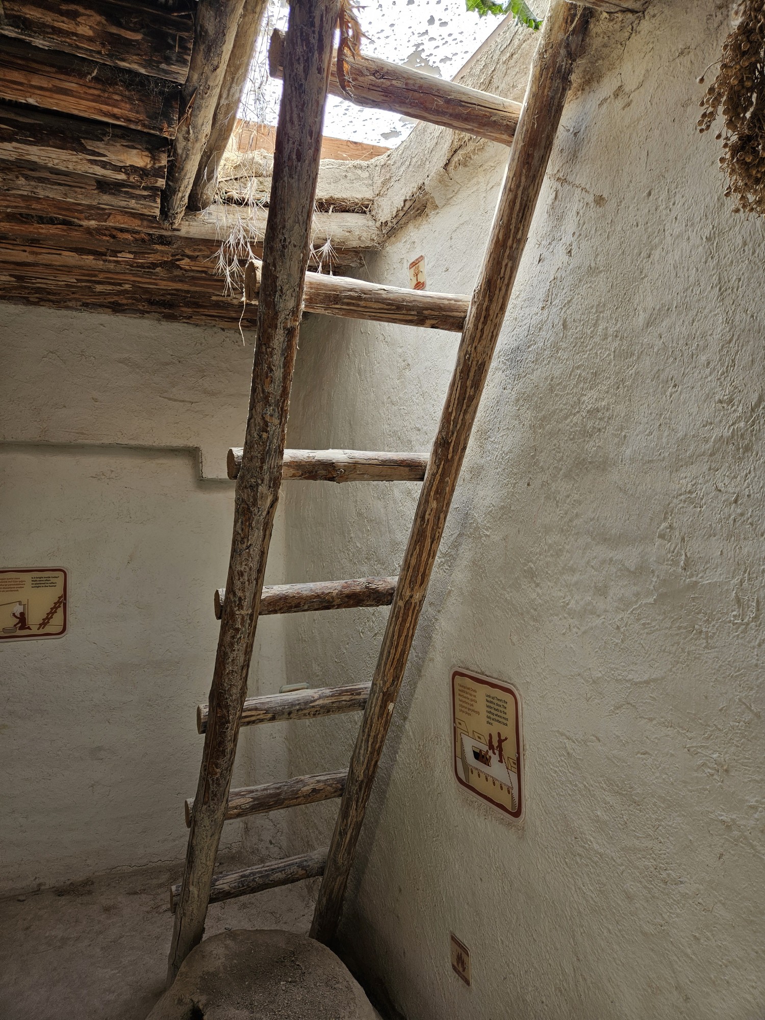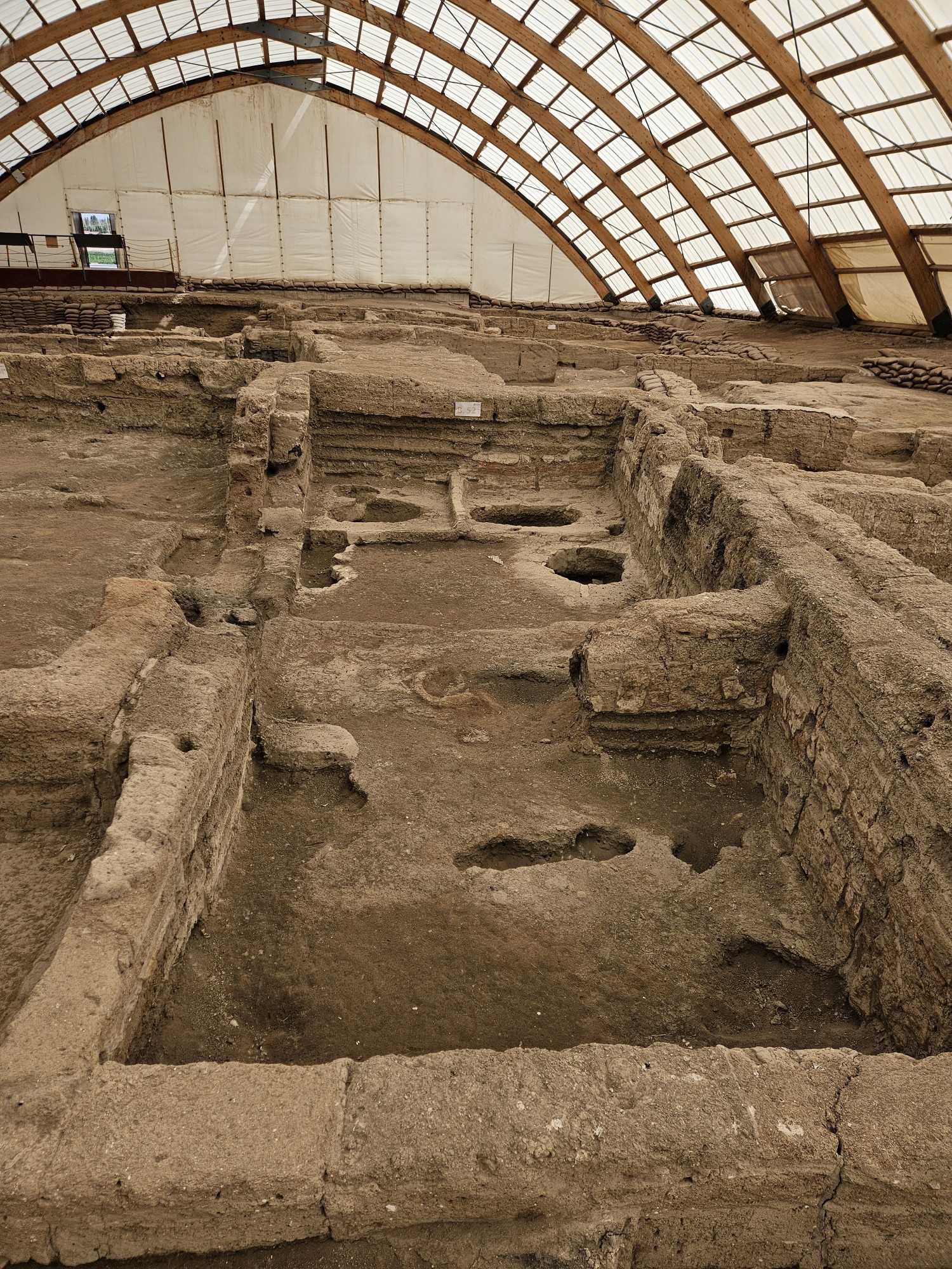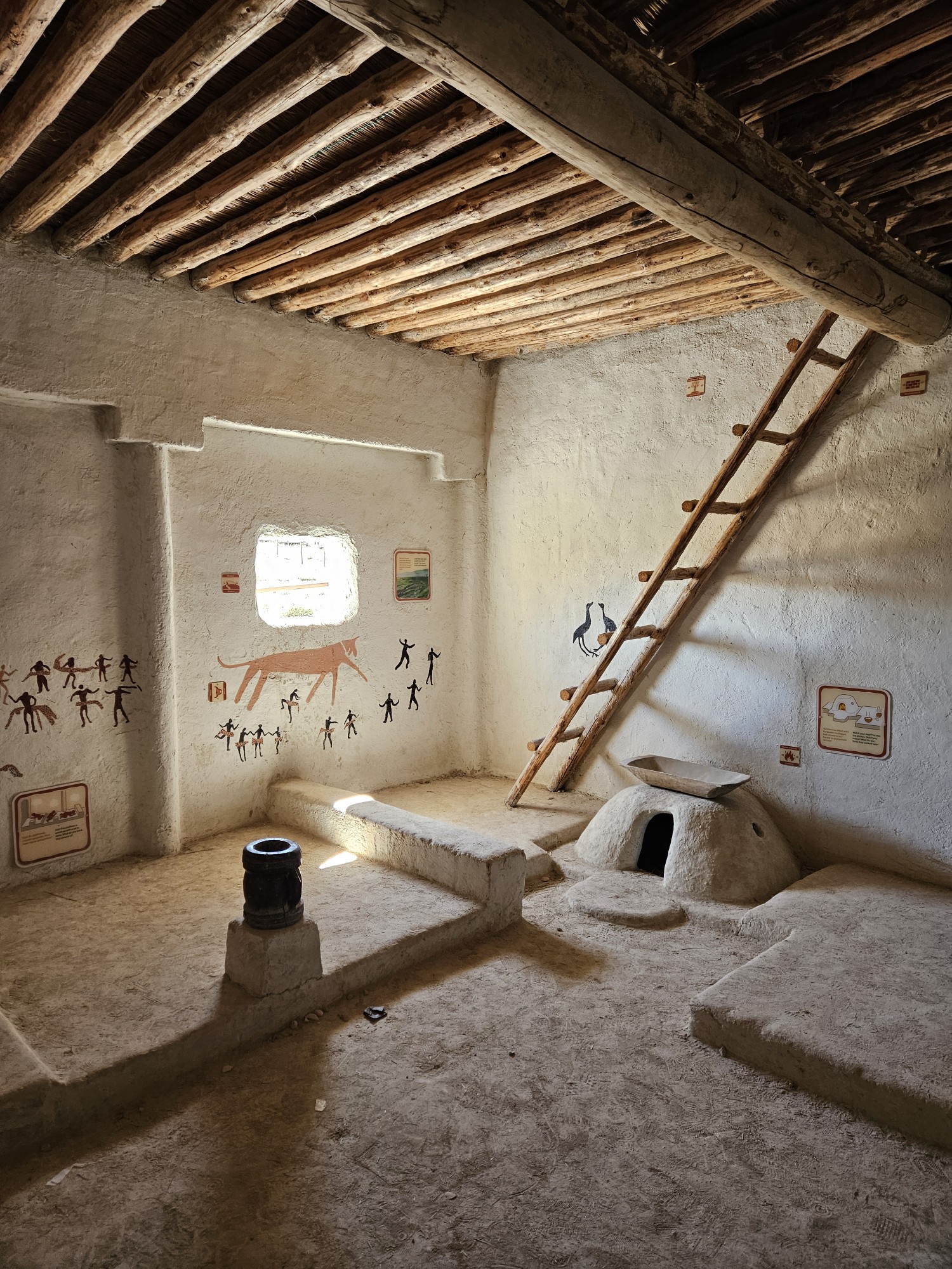 Durante su período de mayor expansión, entre tres y ocho mil personas habitaban aqui en pequeñas casas de adobe a las que se entraba por el techo y que estaban unidas una a otra, de esta manera los techos de las casas formaban una especie de gran terraza por donde las personas caminaban para desplazarse de un lugar a otro de la ciudad.